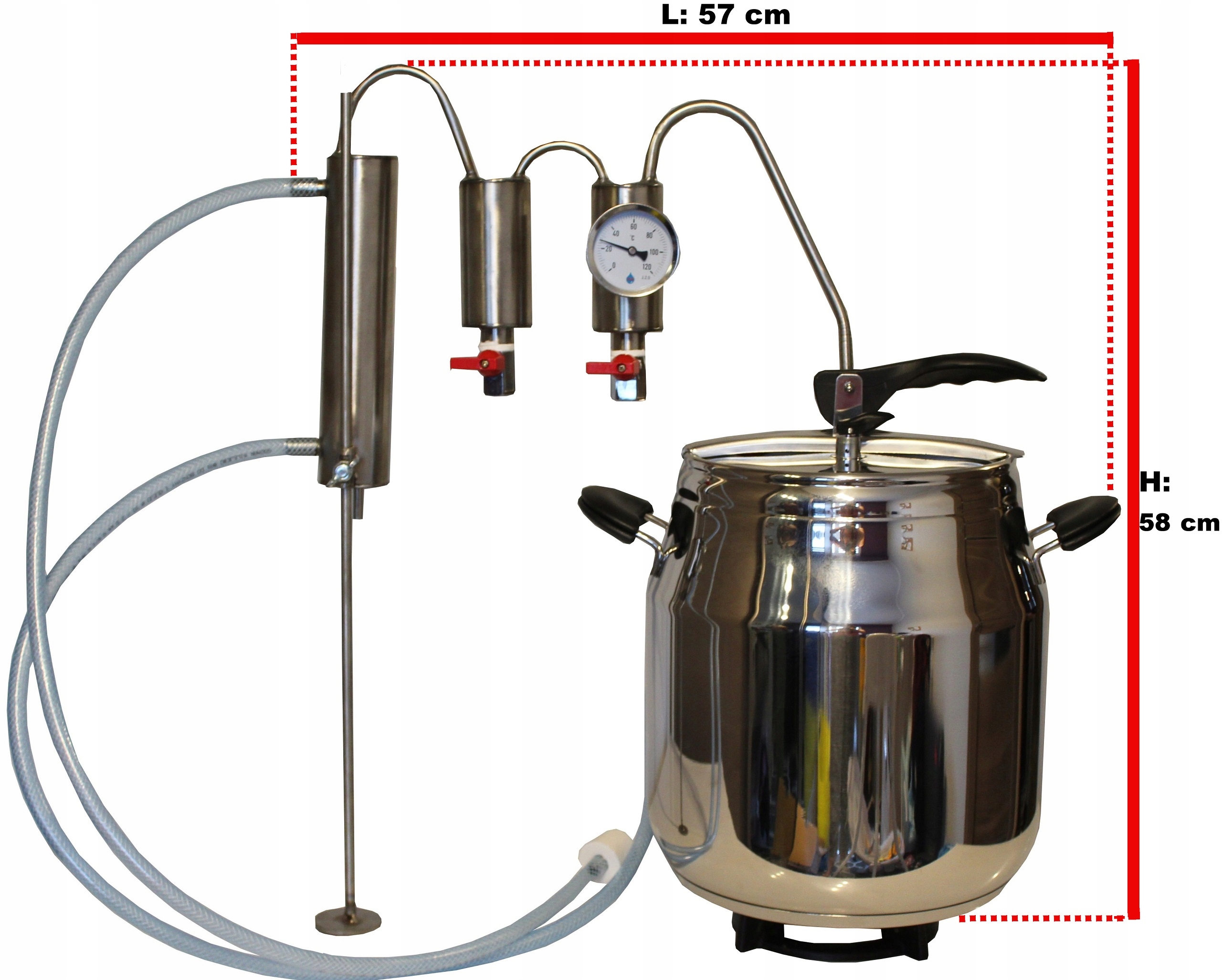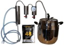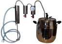 Благодаря использованию самого большого в этом типе дистилляторов кулера дистиллят с радиатор выходит полностью охлажденным. Большой кулер значительно повышает эффективность работы. Два разрядники помогают избавиться от нежелательных побочных частей дистиллята. Благодаря установленному термометром образующийся дистиллят. Камера чрезвычайно проста в использовании.
