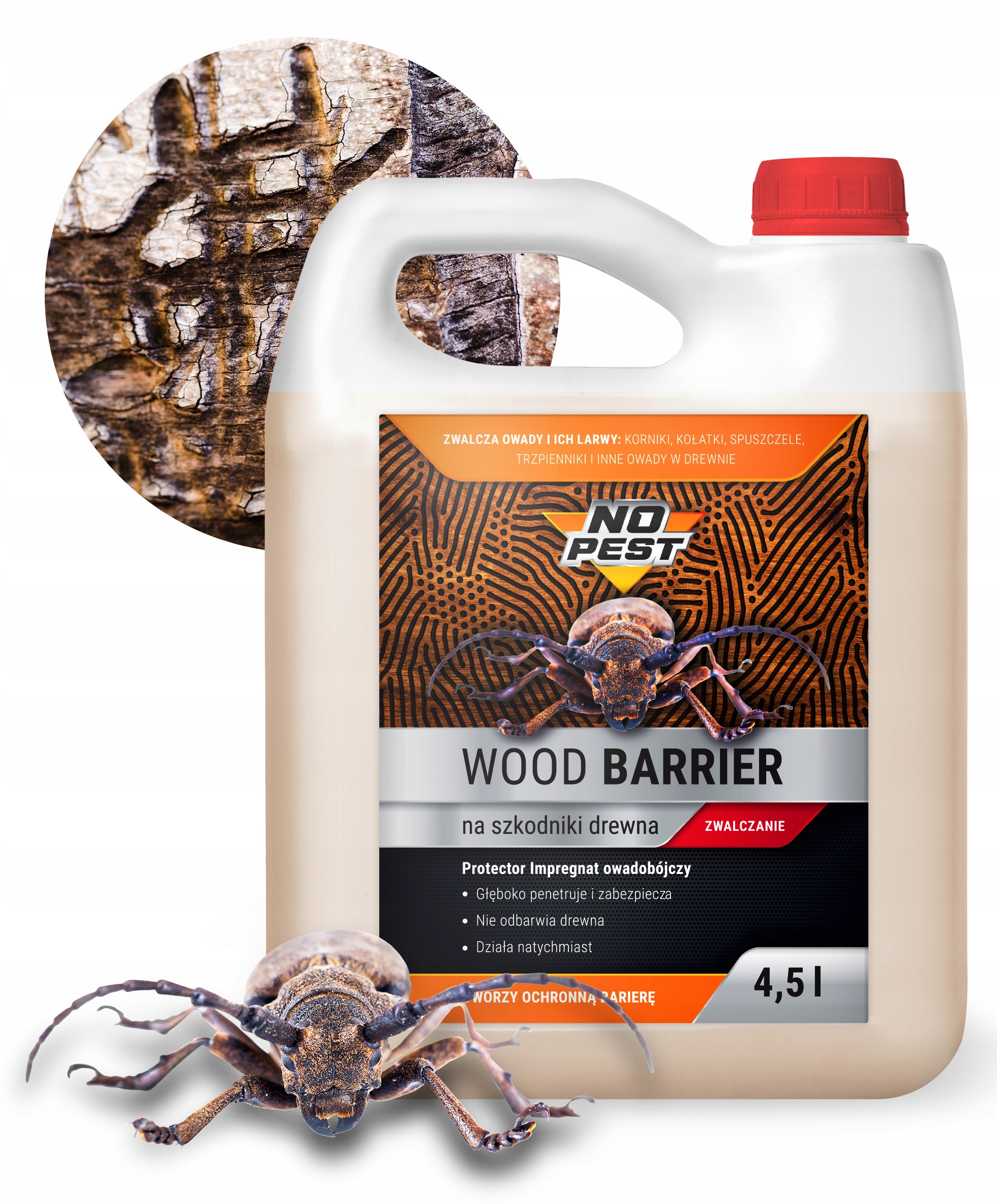 Wood Barrier NO PEST™ инсектицидная пропитка конструкторского, термитов и и их личинки: проникает и защищает древесину. Пропитка барьер. Показывает использование.