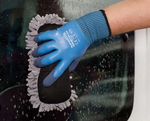 Dłoń powleczona spienionym lateksem, pozwala na pewny chwyt różnych narzędzi, nawet w środowisku wilgotnym, zwiększając ponadto odporność na przetarcie oraz ścieranie.