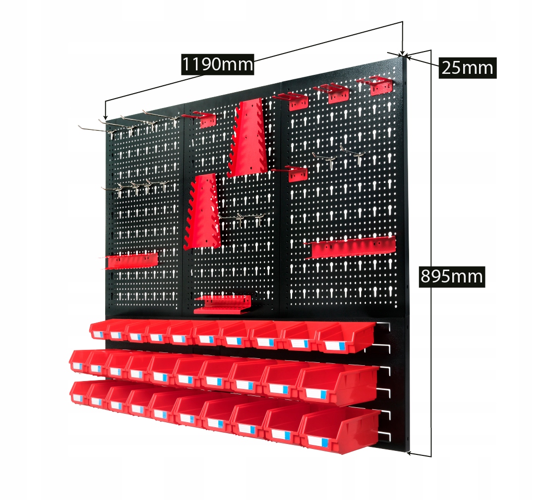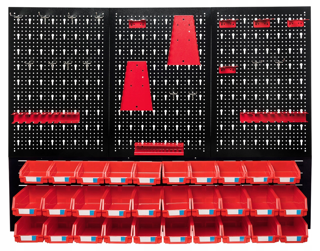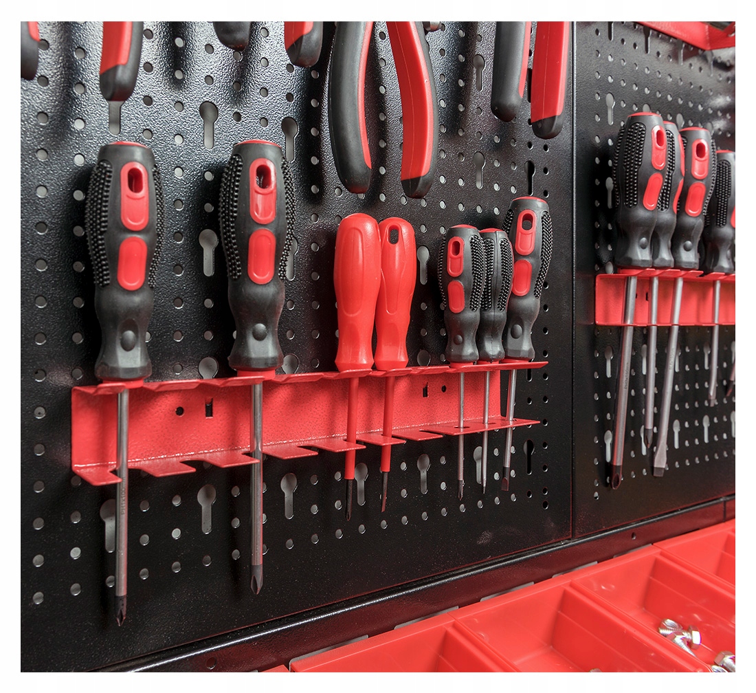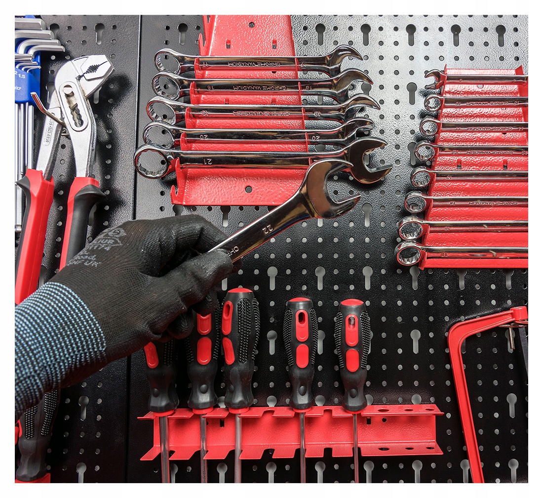 W cenie dostajesz zarówno tablicę, jak i pojemniki czy wieszaki. Gotowe do wypełnienia Twoimi narzędziami - te ze zdjęcia NIE SĄ w zestawie ;)