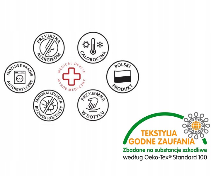 Doskonale spełnia najwyższe wymagania jakościowe i użytkowe. Pranie w wysokich temperaturach eliminuje szkodliwe dla człowieka drobnoustroje.