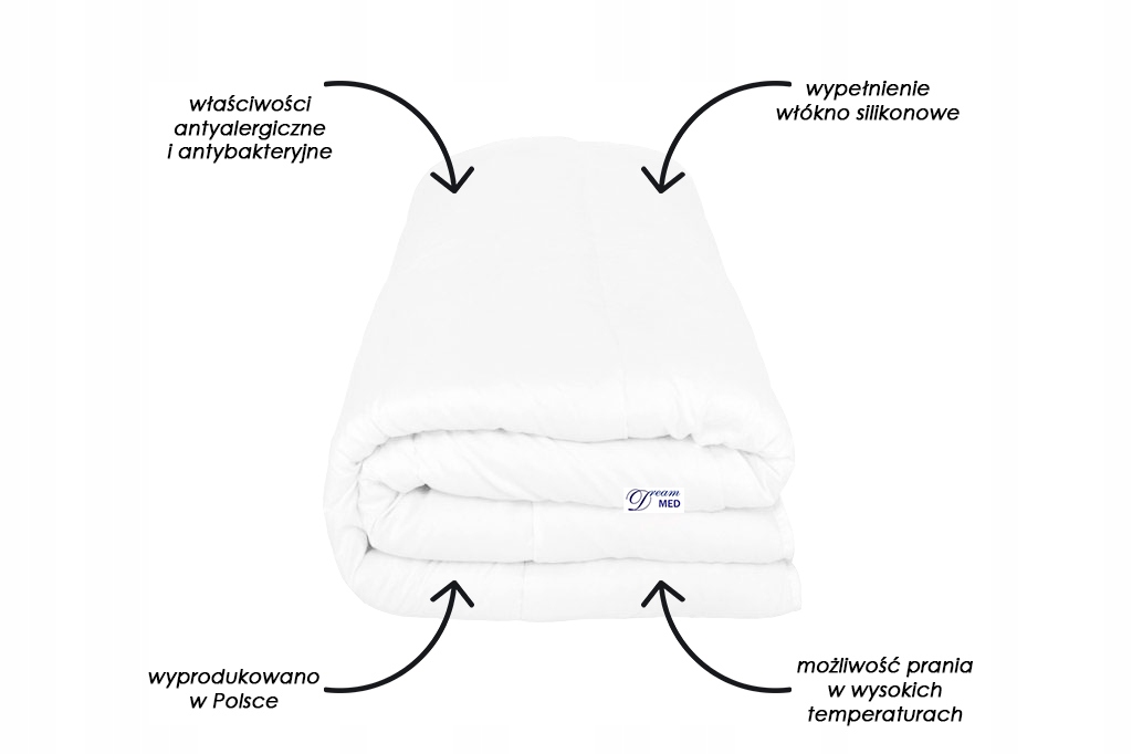 Wyobraź sobie niezwykle miękką, sprężysta i przyjemną w dotyku tkaninę. To właśnie mikrofibra, z której uszyta jest kołdra DreamMED.