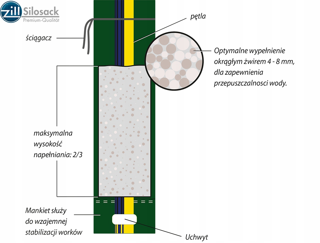 Zastosowanie worka do obciążenia pryzmy zapewnia pełne uszczelnienie krawędzi silosu chroniąc kiszonkę przed dostępem powietrza.