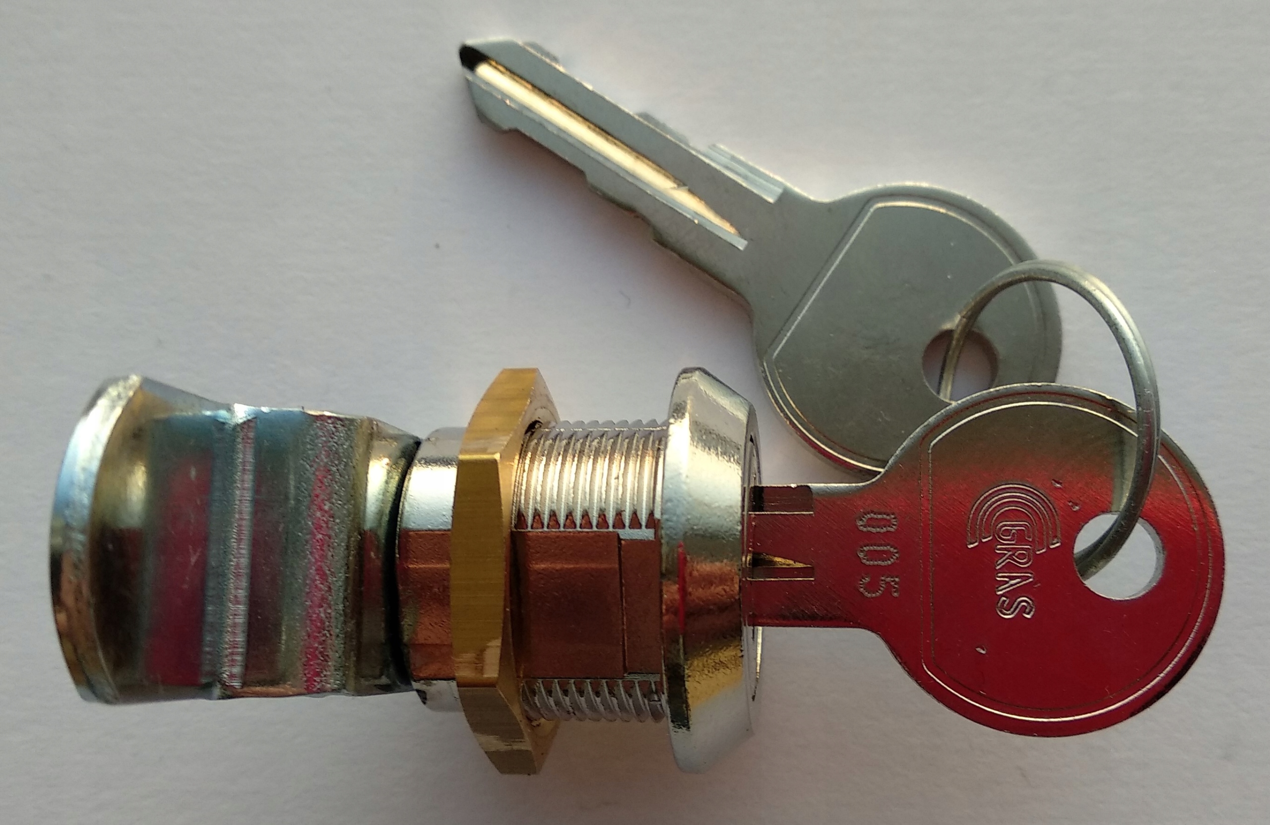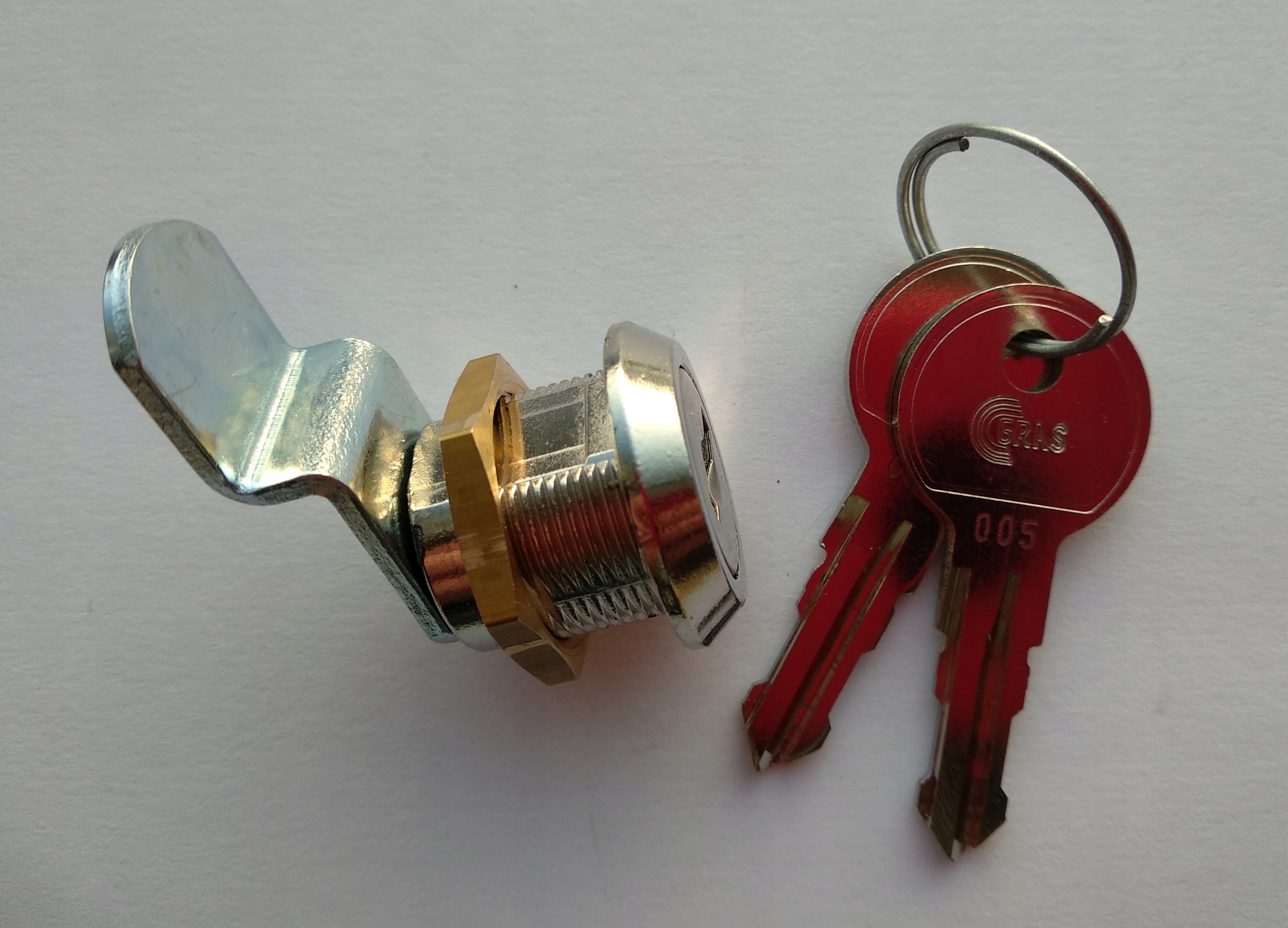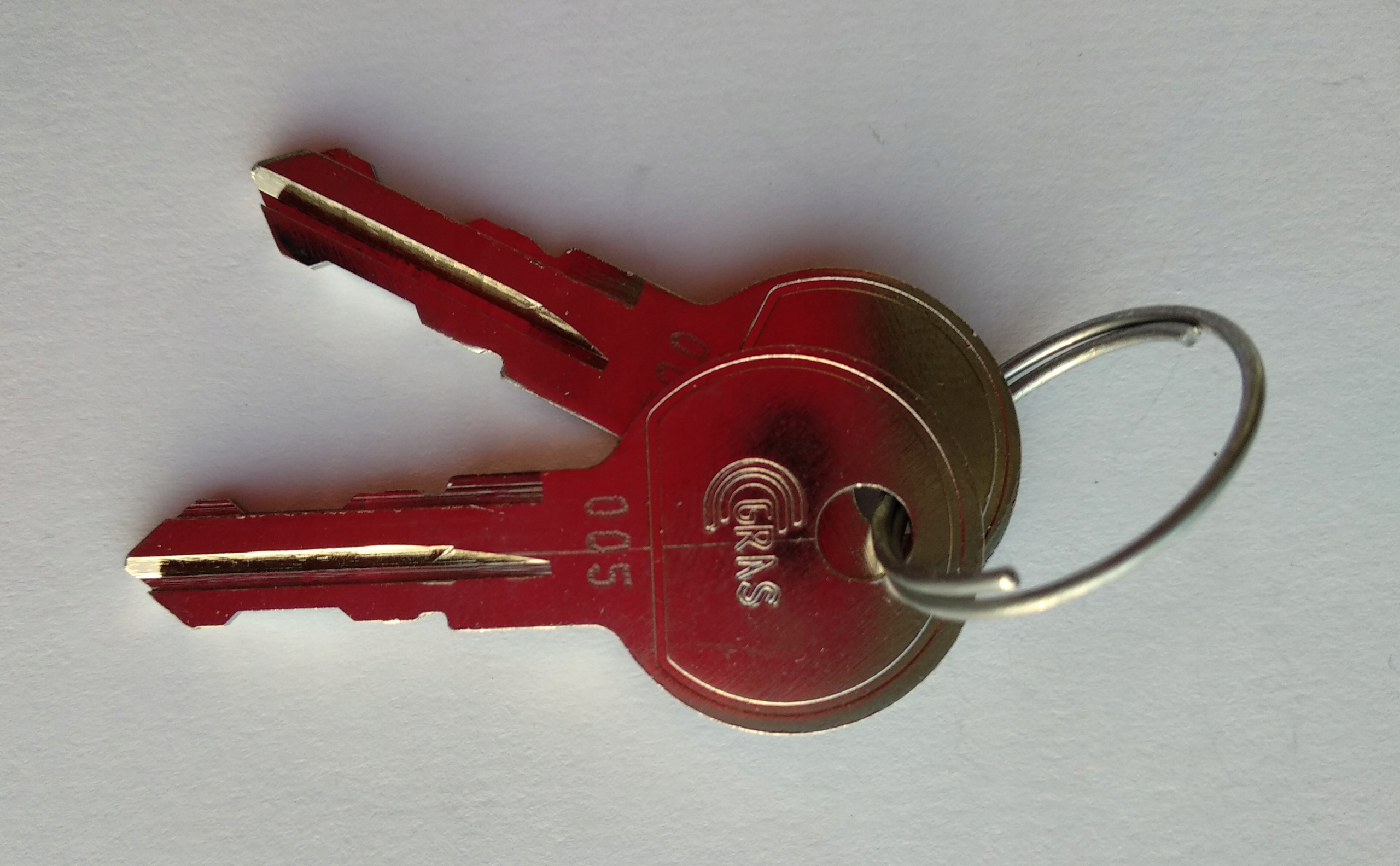 Zamek PATENT 005 do szafki hydrantowej z dwoma kluczykami w komplecie.