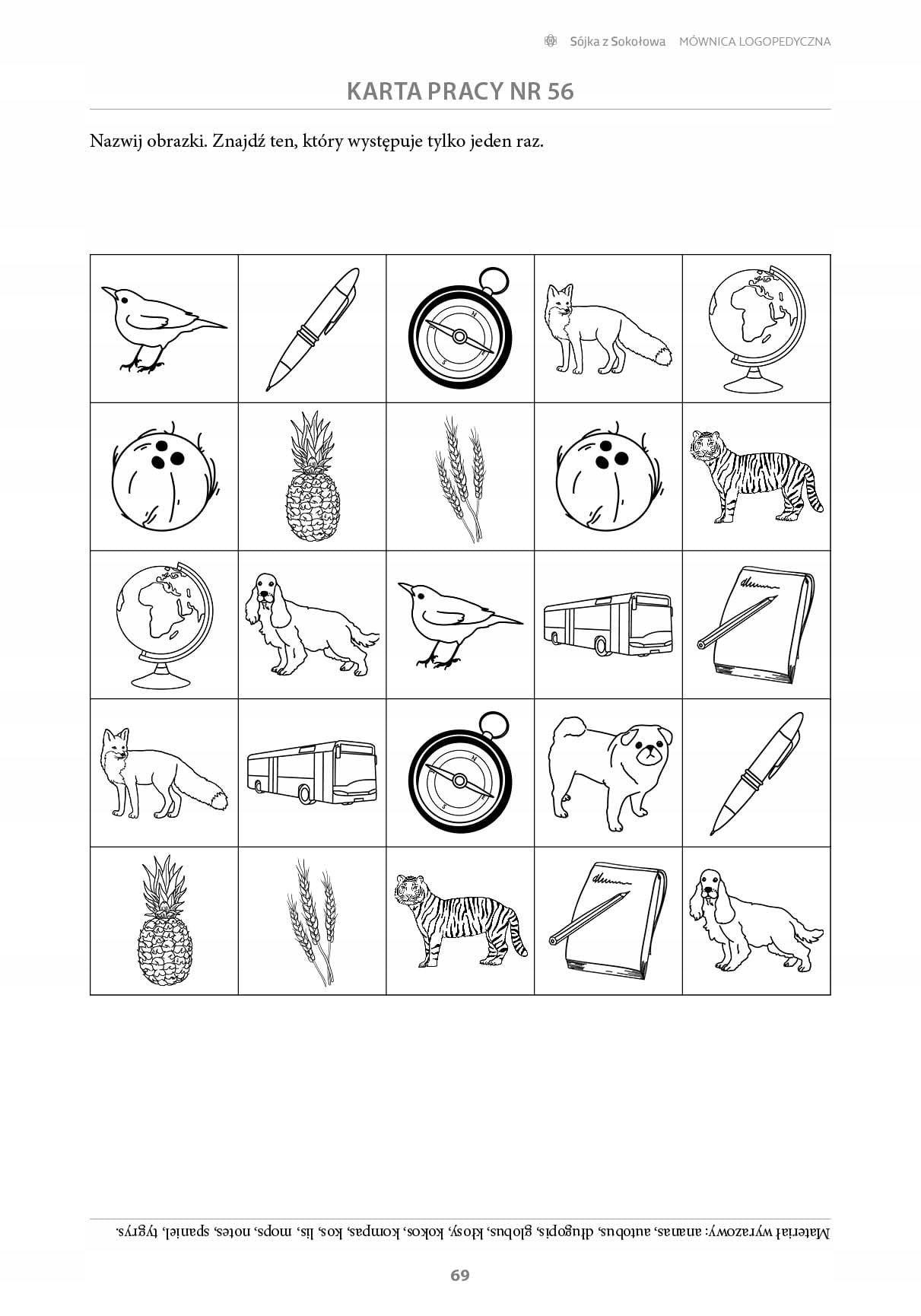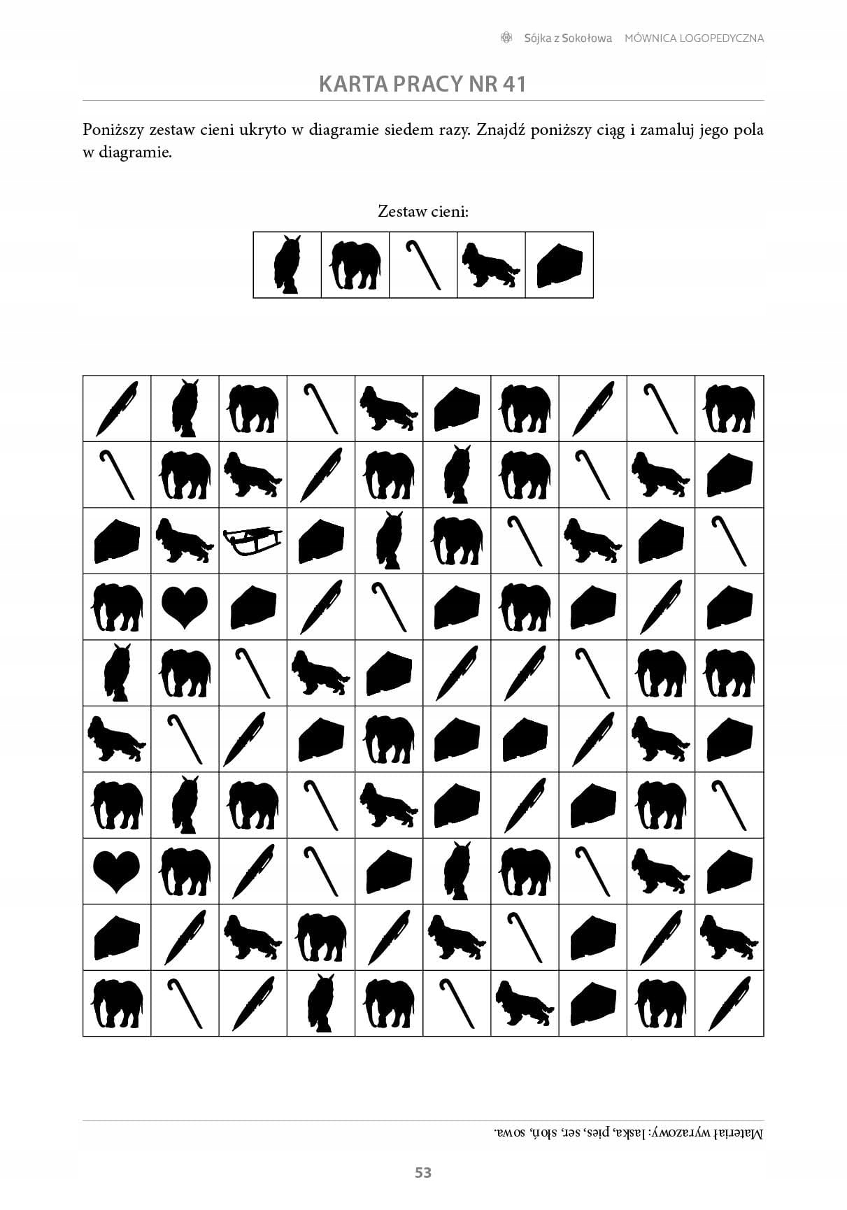 Sójka z Sokołowa to kolejny zeszyt logopedyczny z serii Mównica Logopedyczna przeznaczony dla dzieci, rodziców, logopedów i nauczycieli. Publikacja została opracowana z myślą o uczestnikach terapii logopedycznej, u których wywołano lub skorygowano głoskę [s], oraz o tych, którzy wymagają utrwalania tejże głoski. Sójka z Sokołowa to zeszyt zawierający karty pracy z szerokim wachlarzem ćwiczeń i zabaw, który może być wykorzystany zarówno w gabinecie logopedycznym, jak i w pracy domowej rodzica z dzieckiem. Dla najmłodszych zostały opracowane karty ćwiczeń z materiałem obrazkowym lub obrazkowo-wyrazowym, natomiast dla starszych – karty ćwiczeń wymagające umiejętności czytania i pisania. Materiał został zaprezentowany w formie czarno-białych obrazków, które dziecko może pokolorować. Dzięki temu nie tylko doskonali prawidłową artykulację, ale także usprawnia motorykę małą oraz koordynację wzrokowo-ruchową.