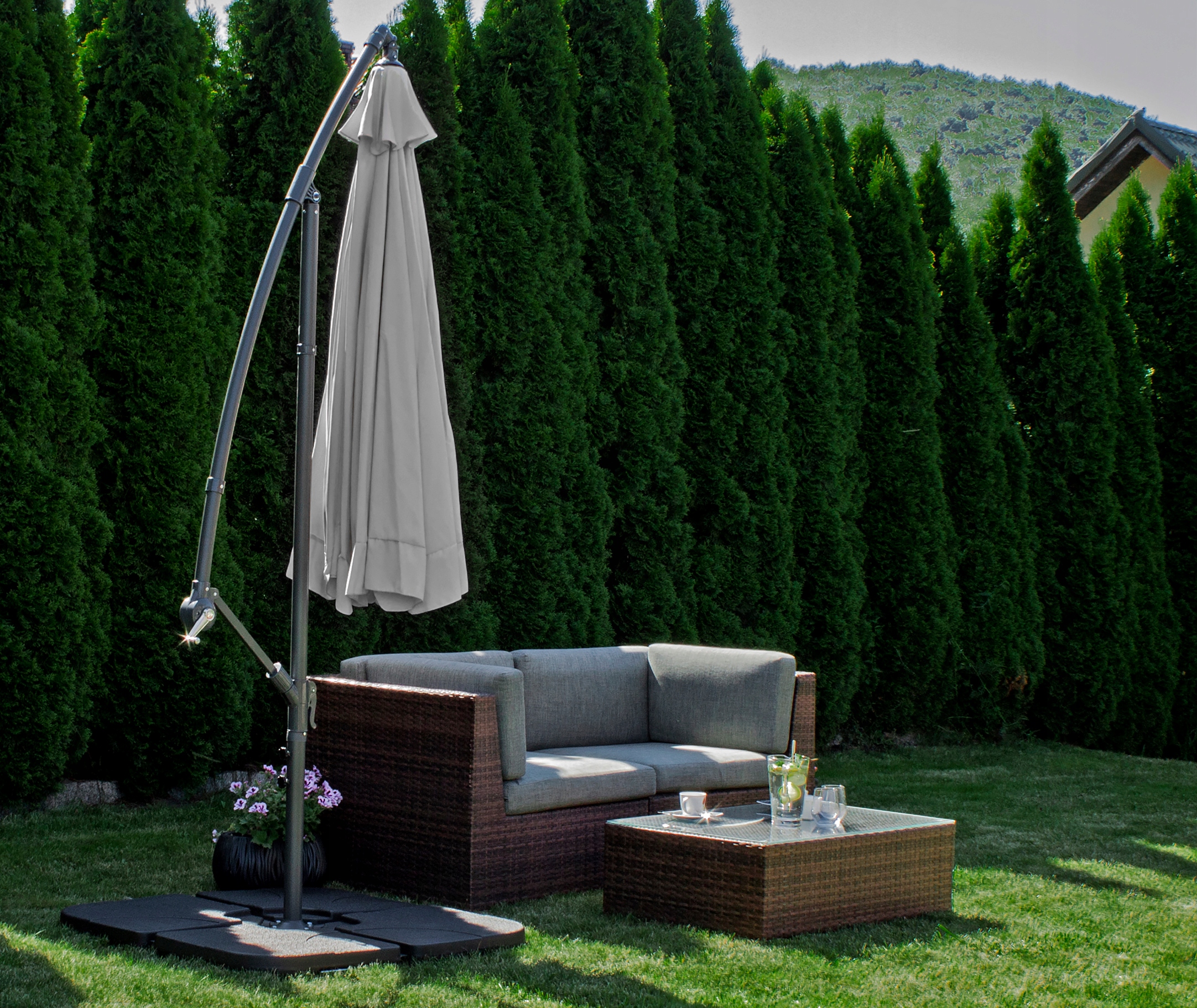 Oferowany model to idealna propozycja do każdego ogrodu, tarasu lub balkonu. Podstawa składająca się z czterech niezależnych elementów zapewni stabilizację każdego parasola na stelażu krzyżakowym.