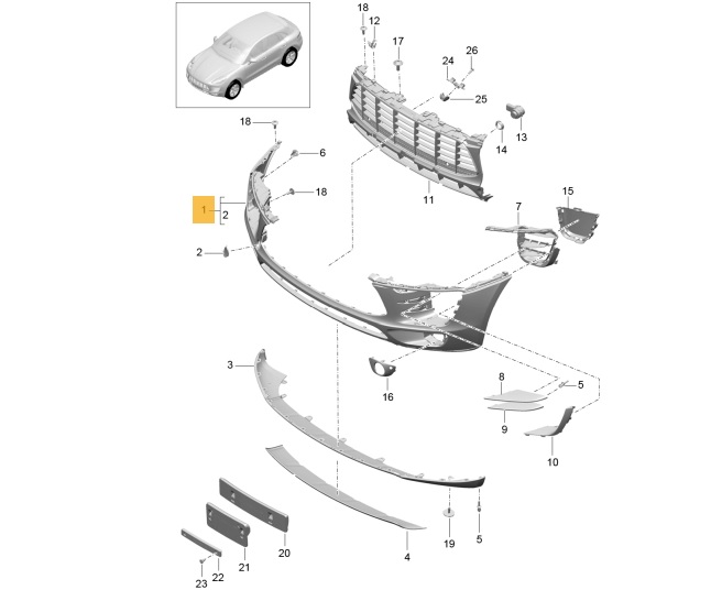 Przedmiotem aukcji jest fabrycznie nowy, 100% oryginalny spoiler dolny zderzaka przedniego do Porsche Macan.