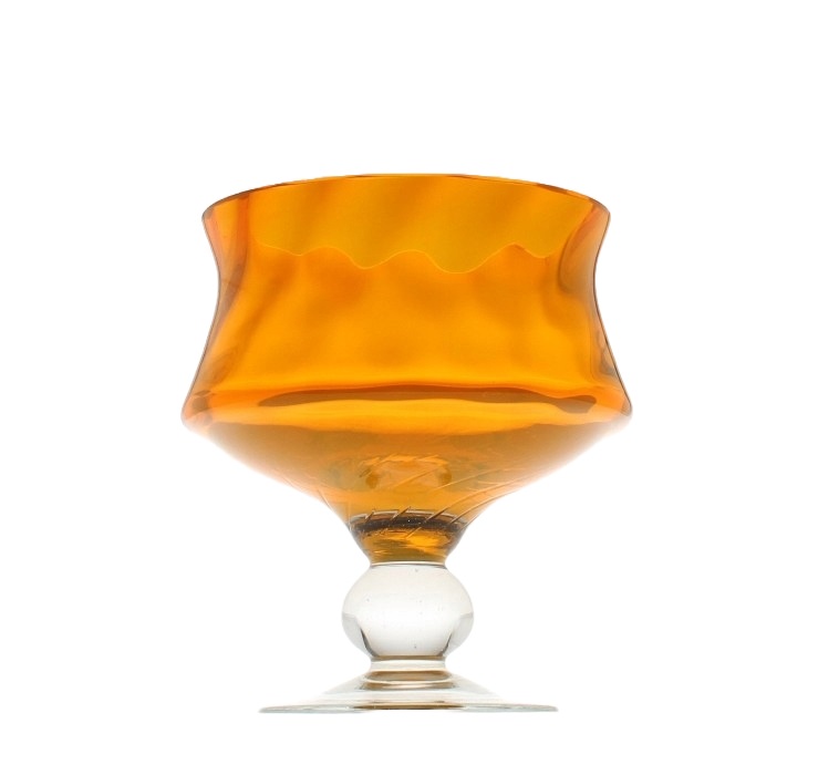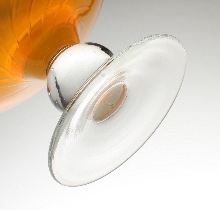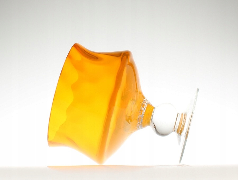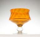 Patera na łakocie ze szkła sodowego. Czarka od wewnątrz barwiona w masie na kolor żółty, stopa bezbarwna. Wnętrze czarki zdobią spiralne, delikatnie wypukłe kliny. Patera pochodzi z Huty Szkła Artystycznego „Staszic” w Dąbrowie Górniczej będącej filią Huty Szkła Gospodarczego „Ząbkowice” w Dąbrowie Górniczej. Lata 70/80XXw.