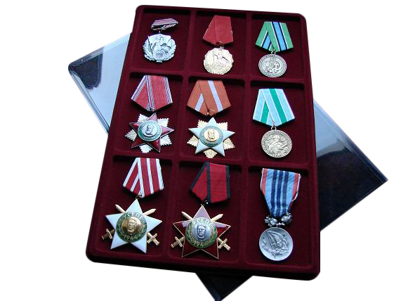 Paleta wspaniale eksponuje odznaczenia nadając im ekskluzywny wygląd.