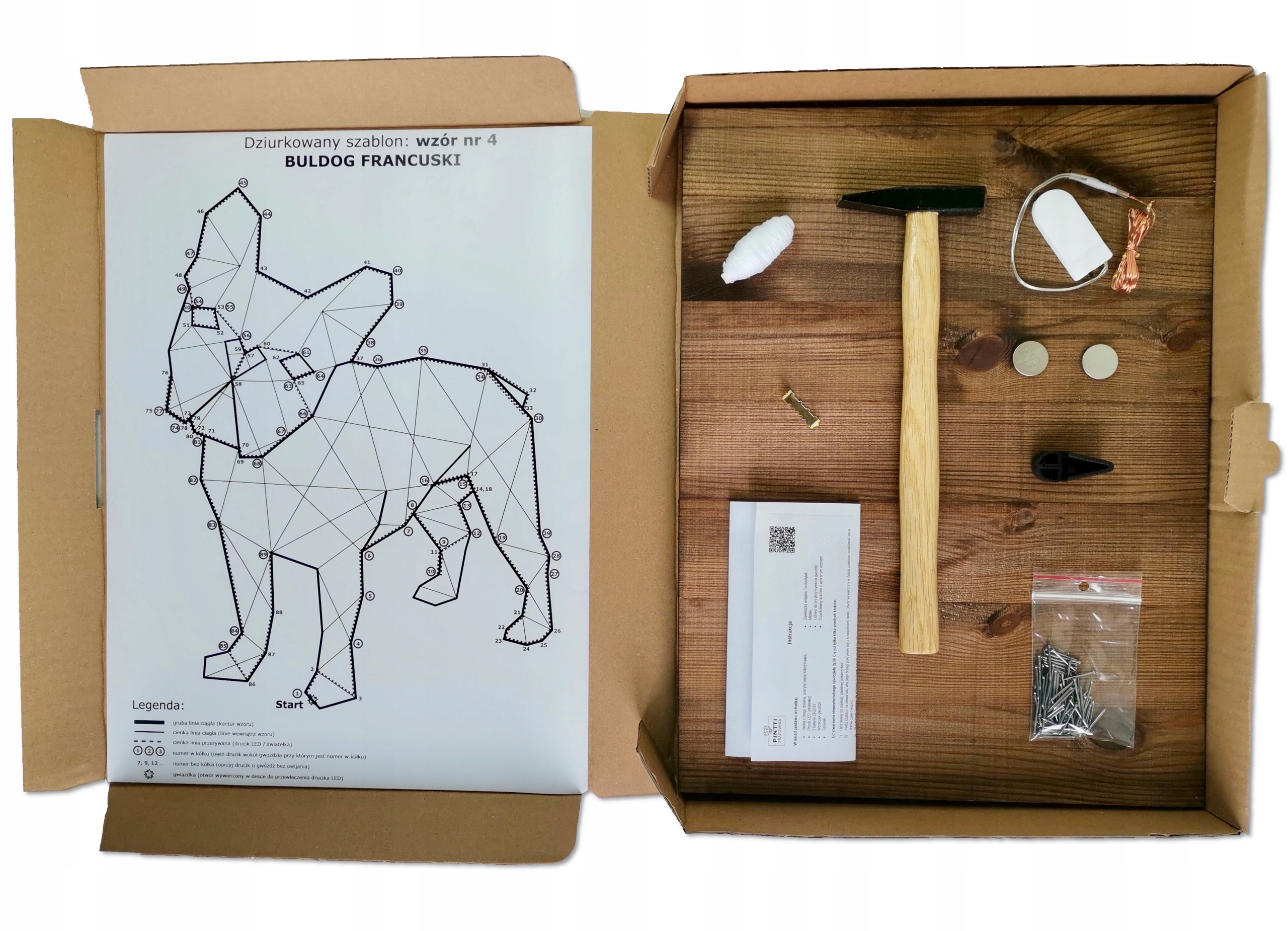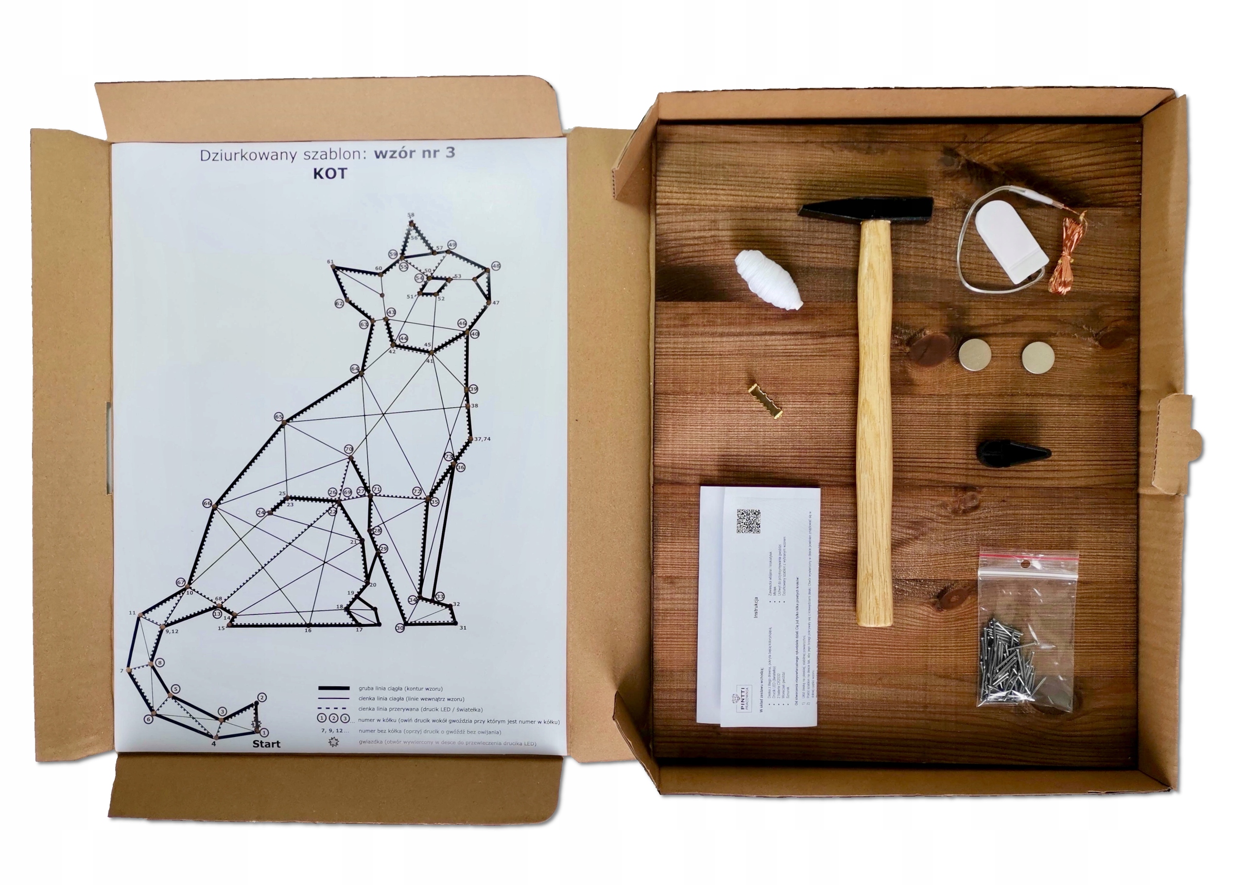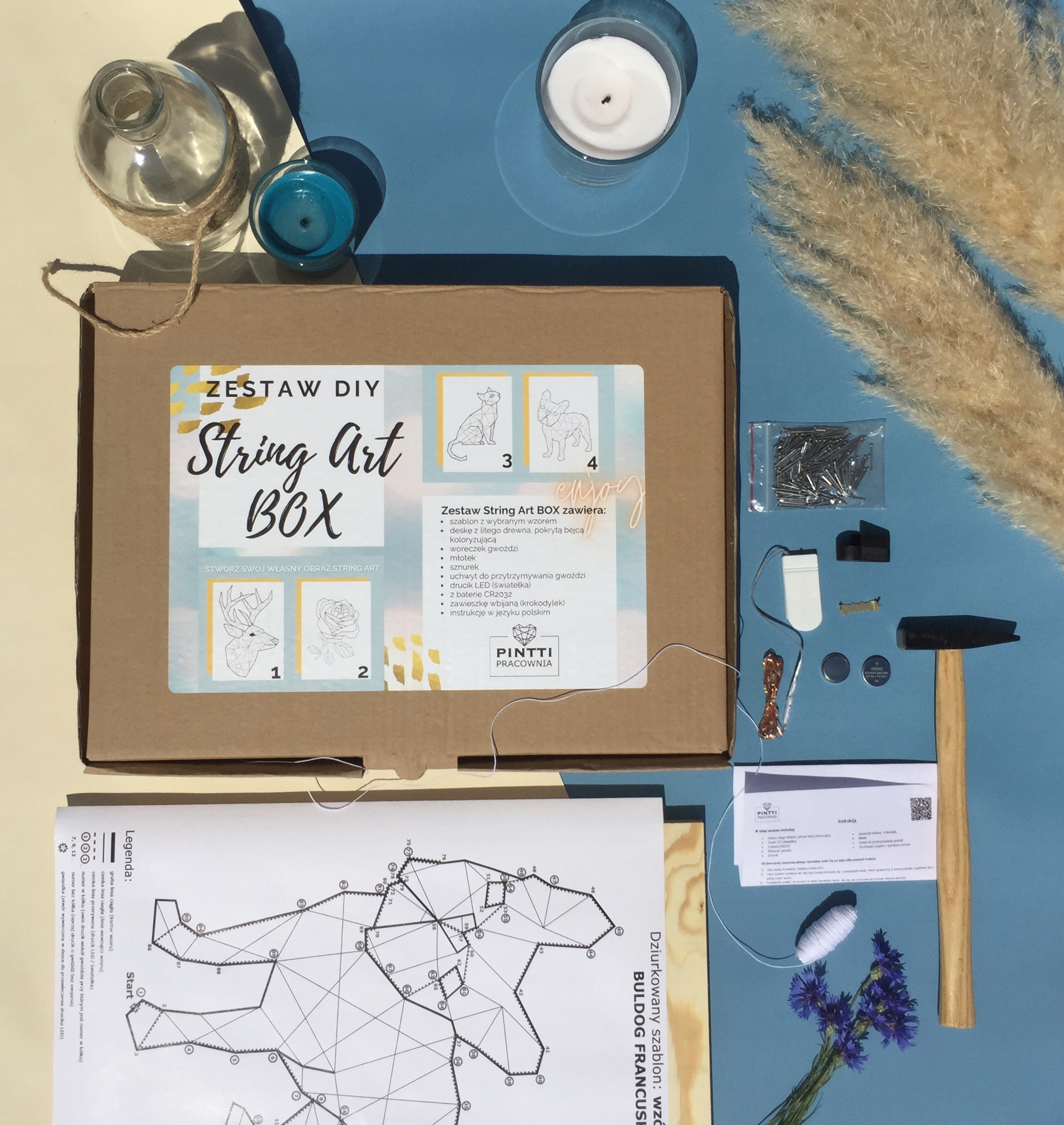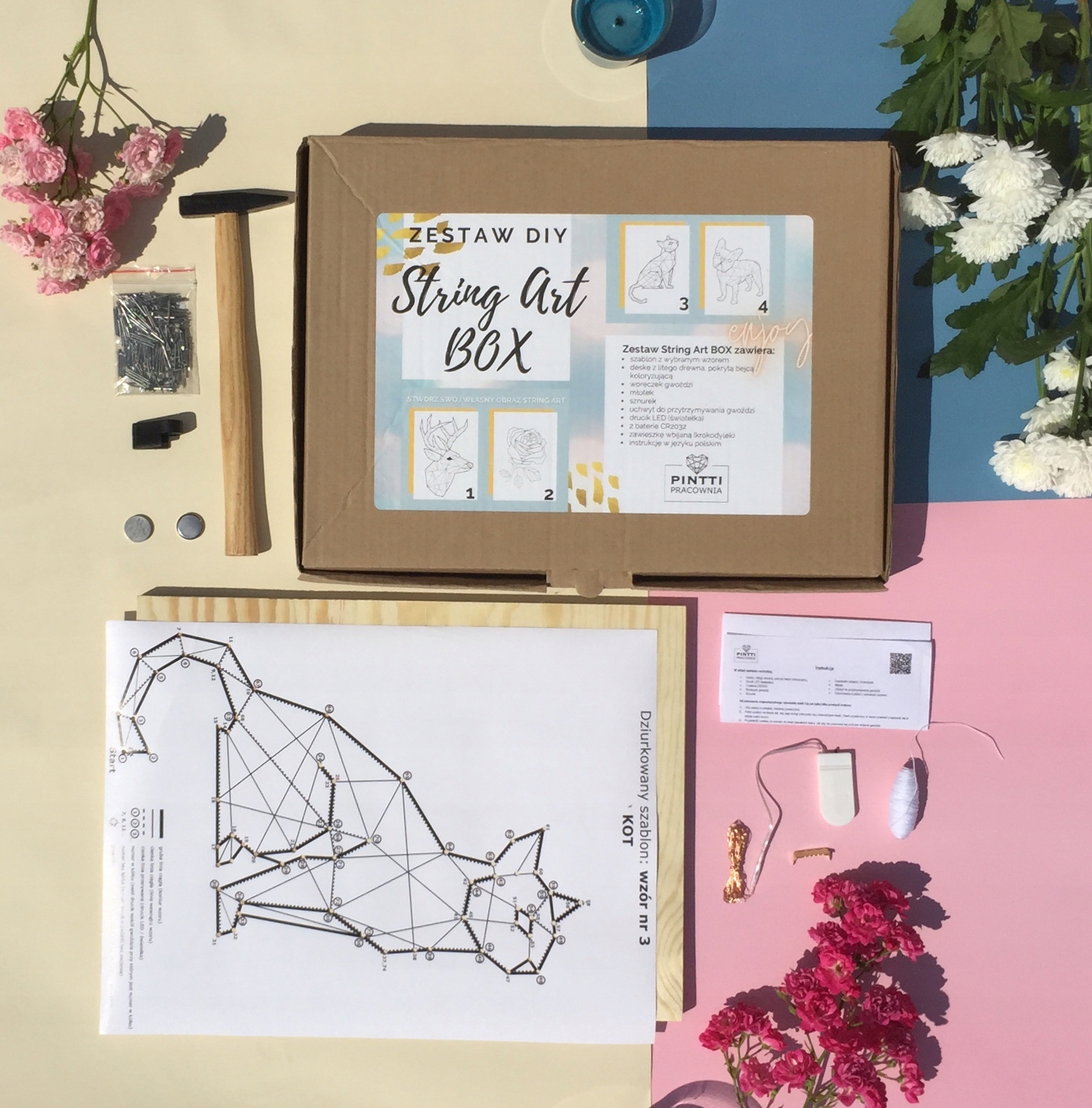 Szczegółowa instrukcja i specjalnie przez nas zaprojektowany dziurkowany szablon pomogą Ci w wykonaniu obrazu String art.