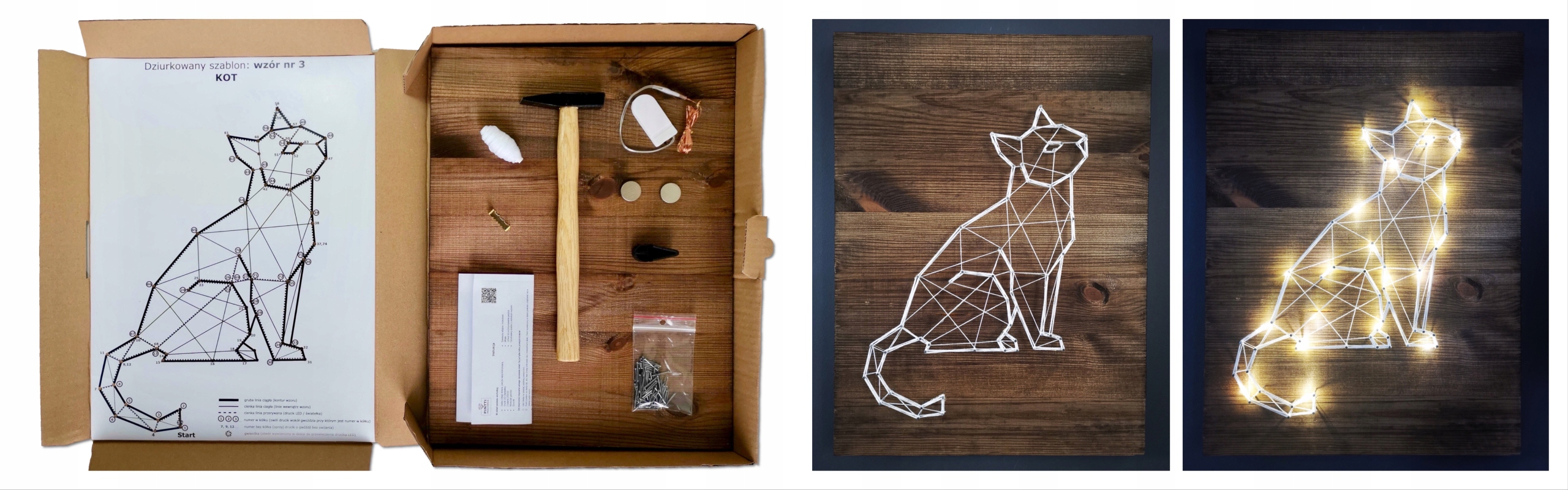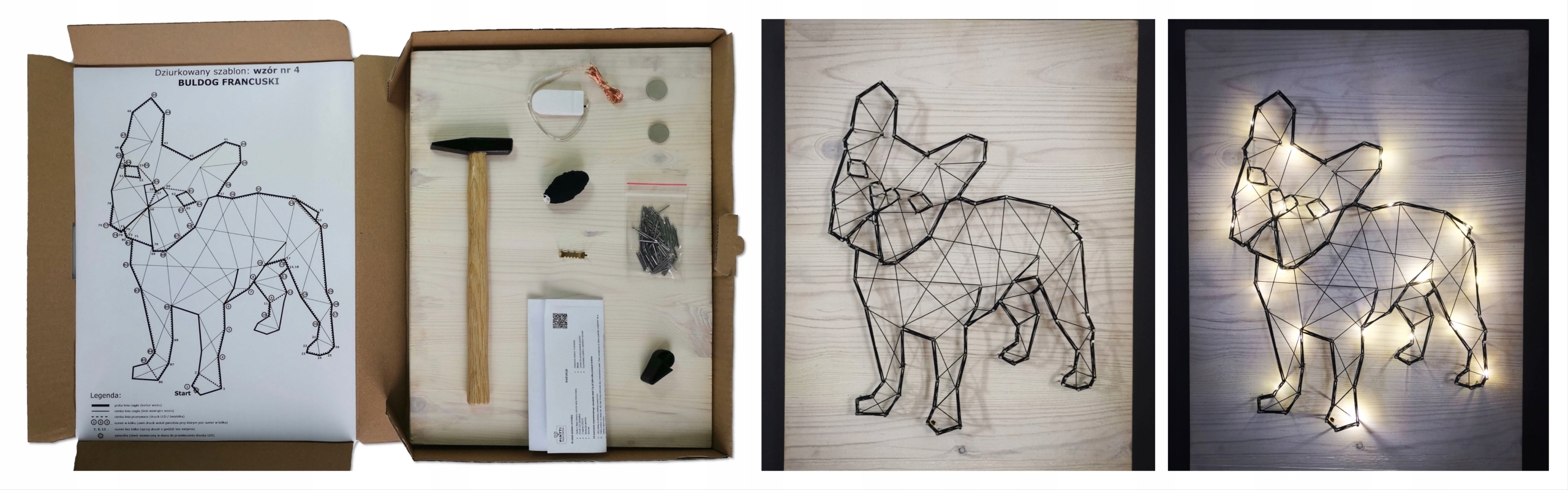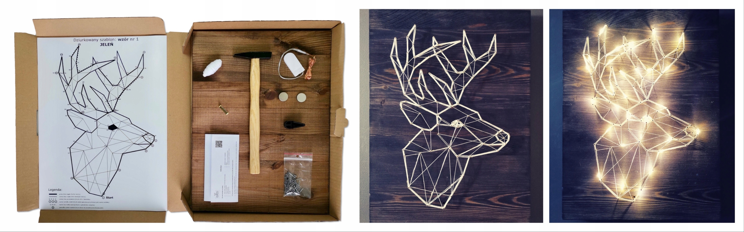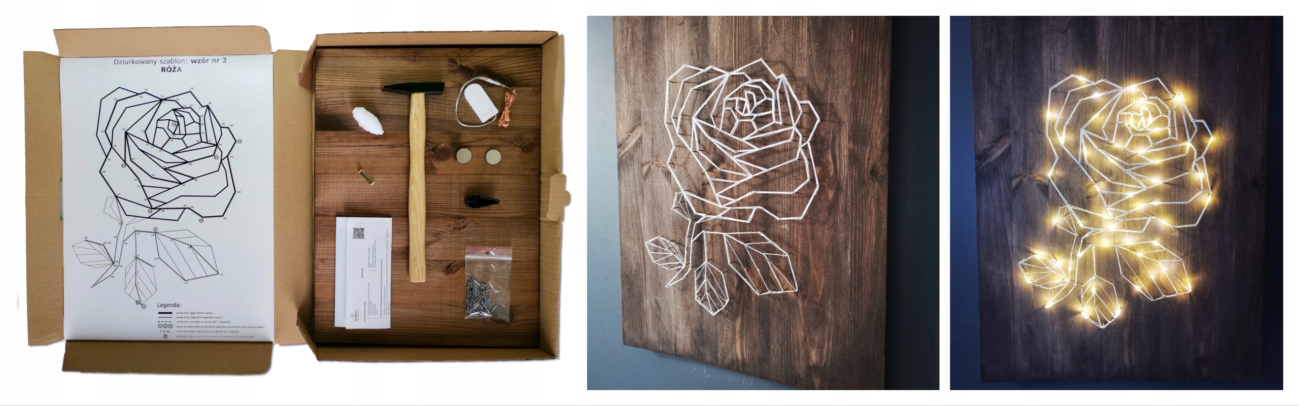 String art BOX to komplet wszystkich potrzebnych akcesoriów do własnoręcznego stworzenia wyjątkowej przestrzennej dekoracji z podświetleniem LED.