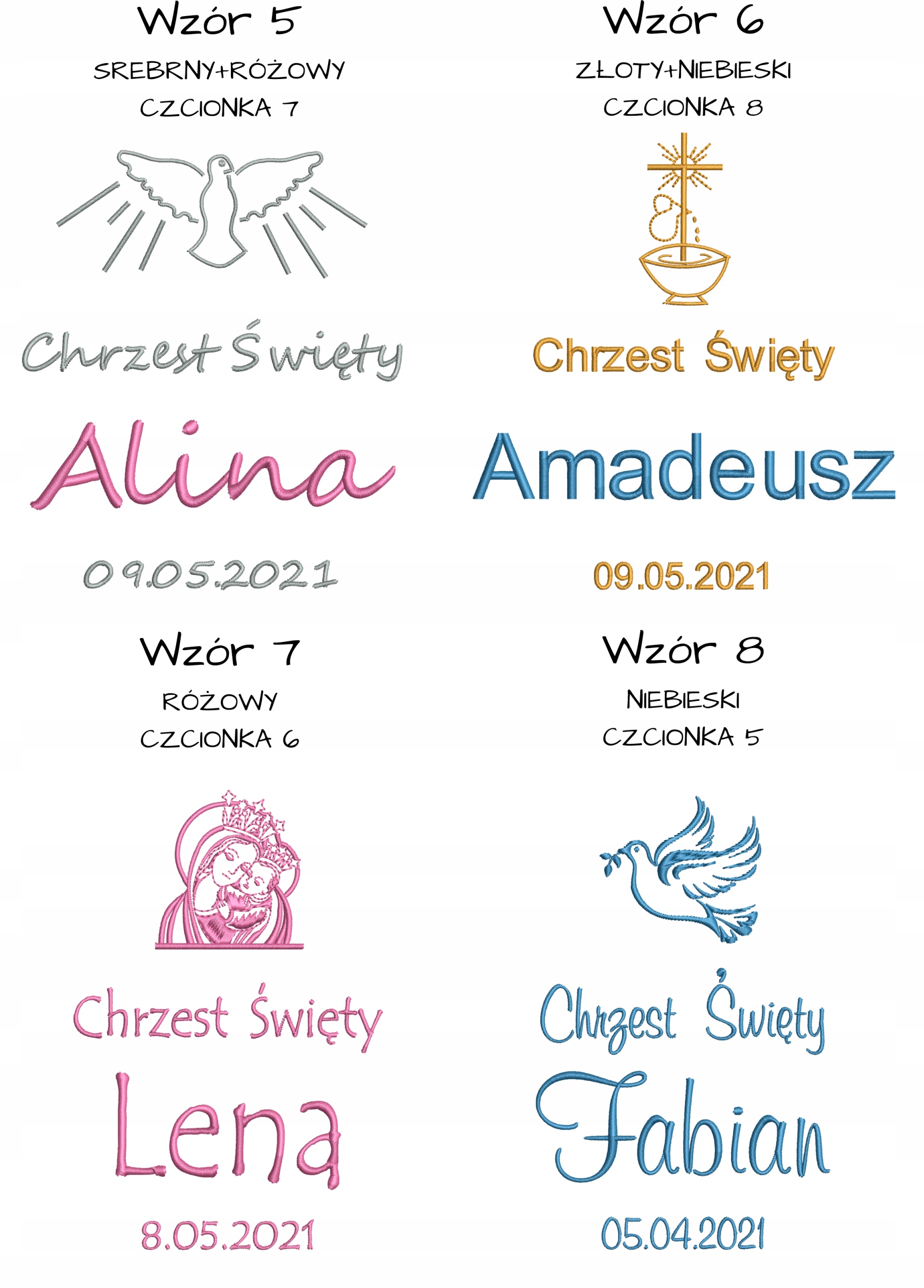 Haft wykonujemy zgodnie z otrzymanymi informacjami (imiona i data zostają wyhaftowane tak, jak zostały nam przesłane), dlatego prosimy o dokładne sprawdzenie daty i odpowiednią odmianę imion.