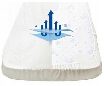 Takie prześcieradło zawdzięcza swoje walory przez połączenie dzianiny z membraną poliuretanową która ma za zadanie nie dopuścić do przenikania płynów na zewnątrz.