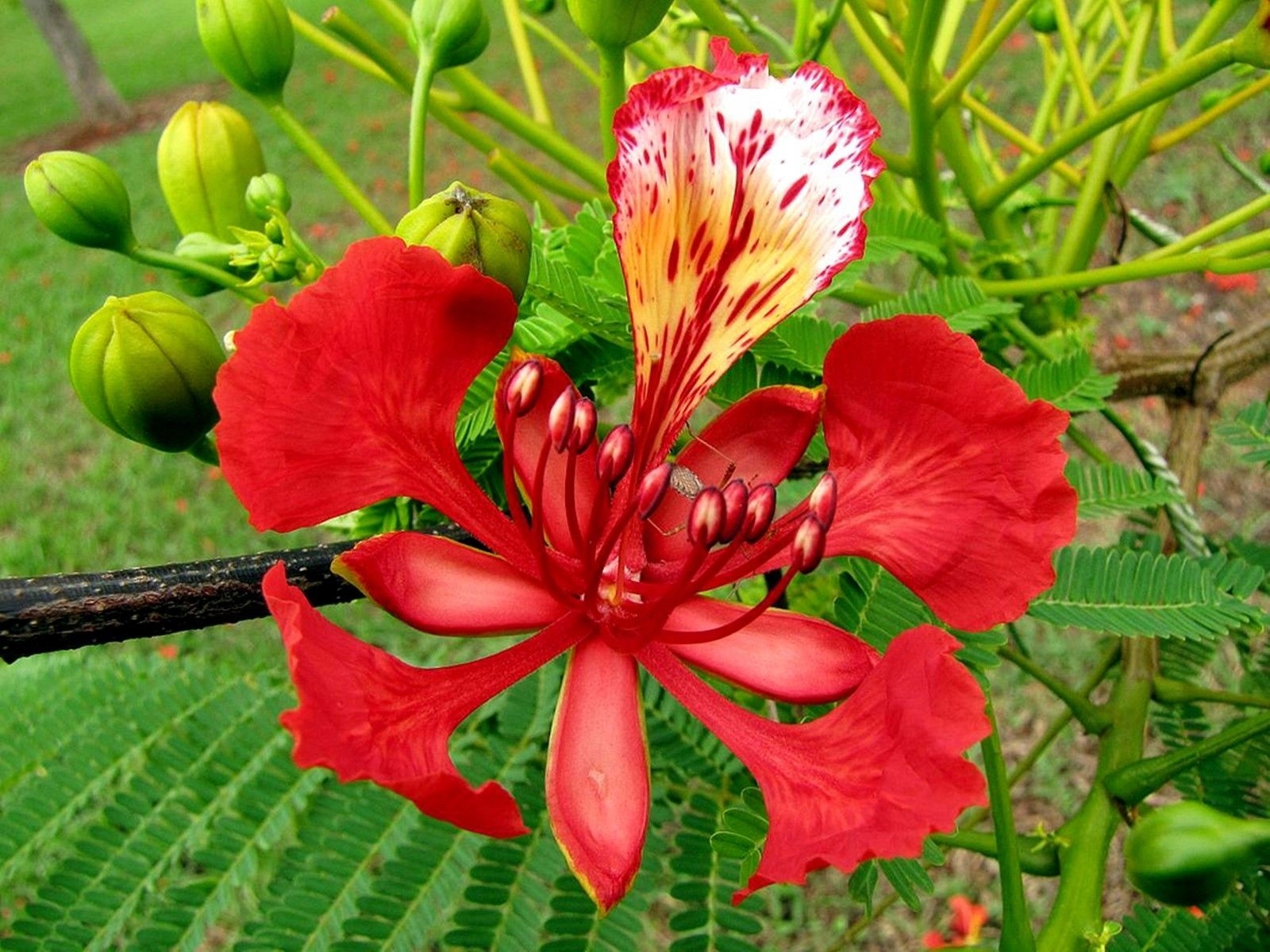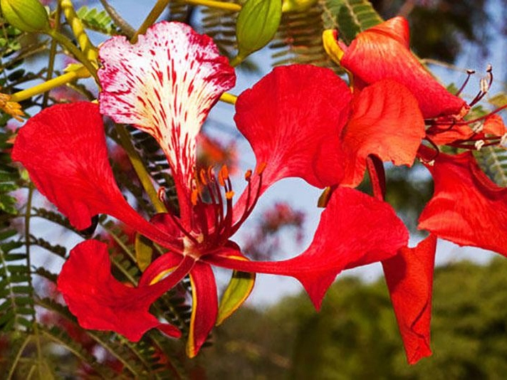 Пламень Африка является одним из самых красивых деревьев в мире. В период цветения издалека выглядит как бы она вся загорелась своими великолепными цветами. Выделяет нежный приятный аромат запах. Цветки появляются в конце мая-начале июня, в период цветения все растение он буквально покрывается цветами.Африканское пламя отлично подходит для бонсай, любит обрезку и дает без проблем формировать.