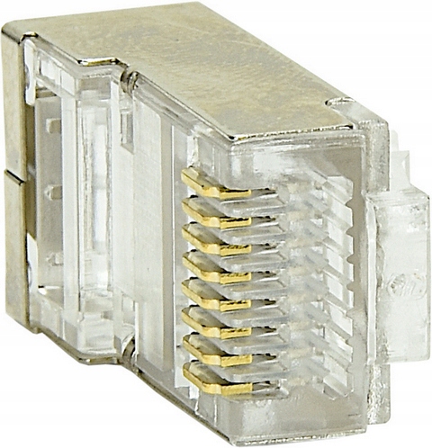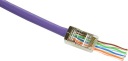 Современные сквозные разъем RJ45 значительно упрощает получение наконечника, позволяя полностью протягивать жилы через вилку. Благодаря проходу вены расположены равномерно, установщик получает визуальный контроль порядок расположения вен перед затягиванием.