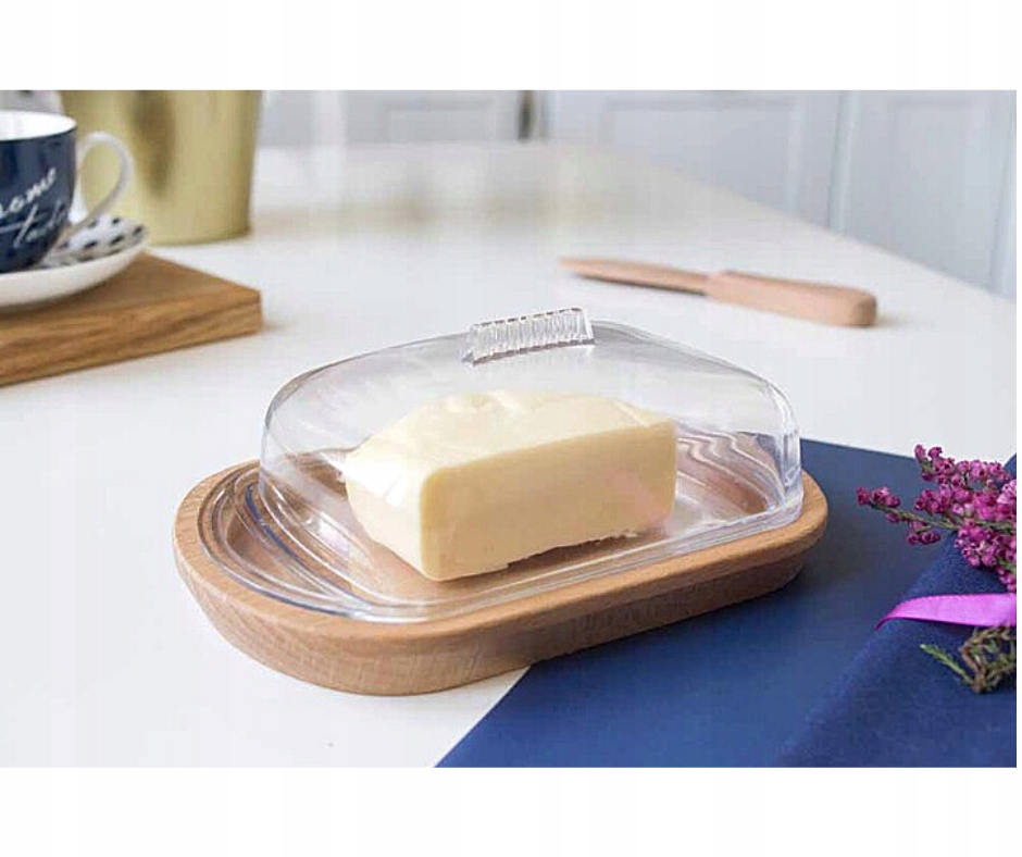 Maselniczka z drewnianym spodem sprawdzi się w każdej kuchni.