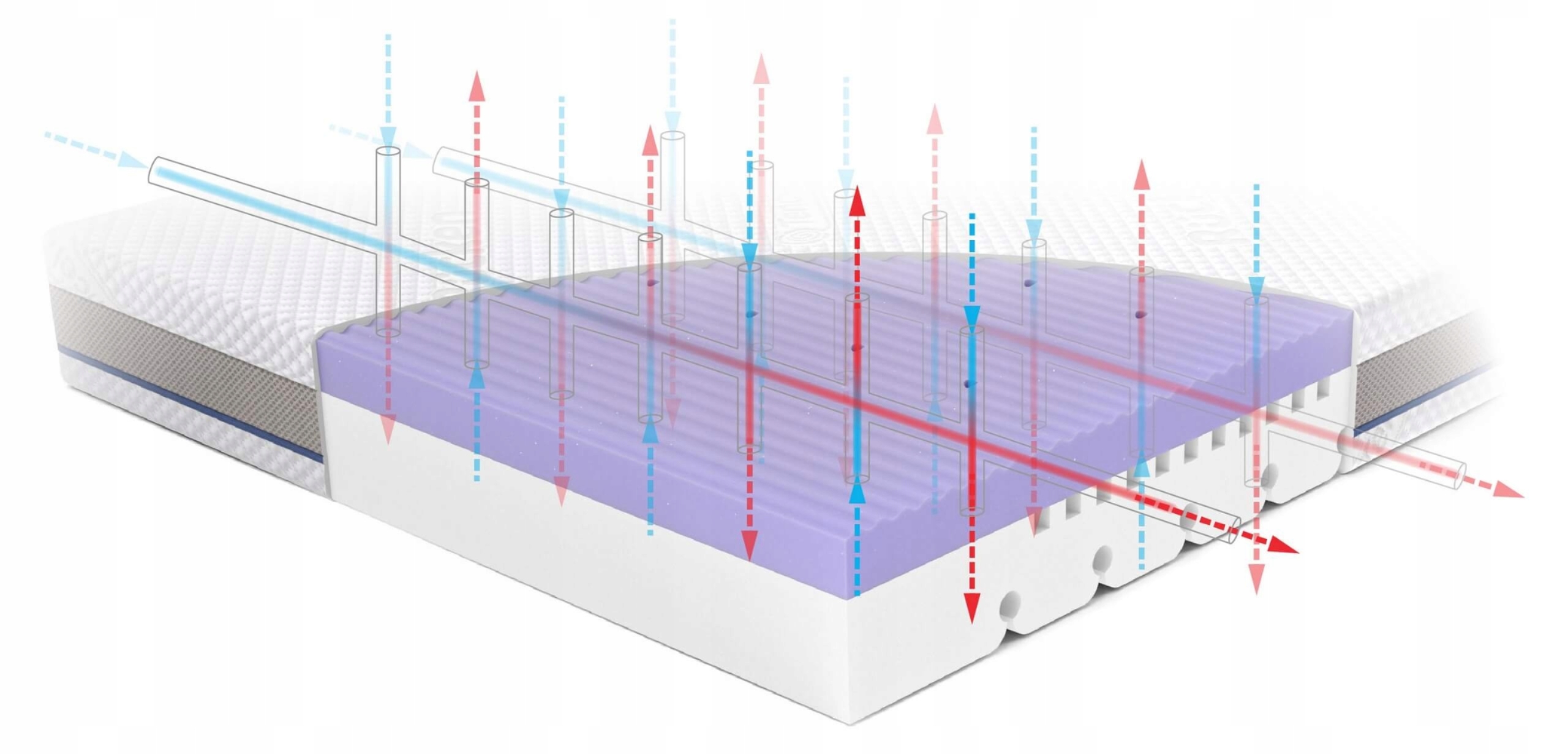 ✔ Poziome kanaliki wentylacyjne na całej płaszczyźnie snu