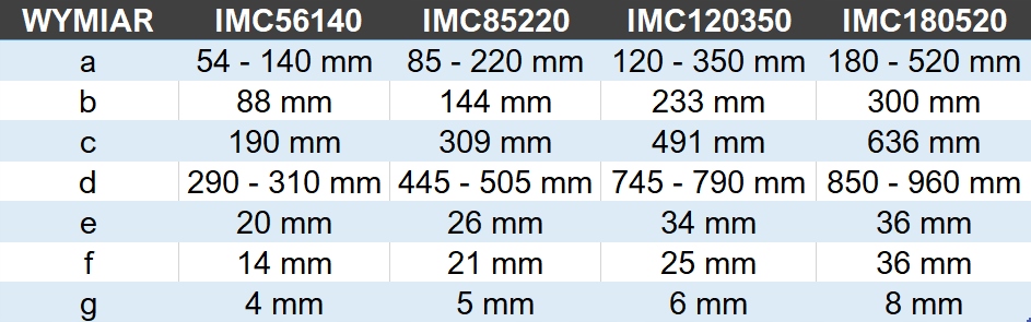 Центровщик предназначен для позиционирования фланцев для прямых участков труб. Диапазон диаметр составляет от 56 мм до 140 мм. Зажимы IMC могут использоваться для всех видов материалов, потому что только нержавеющая сталь контактирует с трубой.
