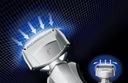 Wielofunkcyjne ostrza łukowe i obrotowa głowica zapewniają delikatne golenie bezpośrednio przy skórze.