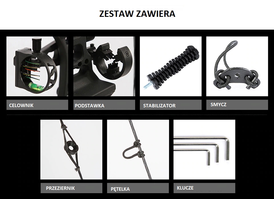 Zachęcamy do zakupu łuku wraz ze spustem i strzałami ponieważ tych akcesoriów nie ma w zestawie.