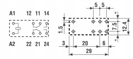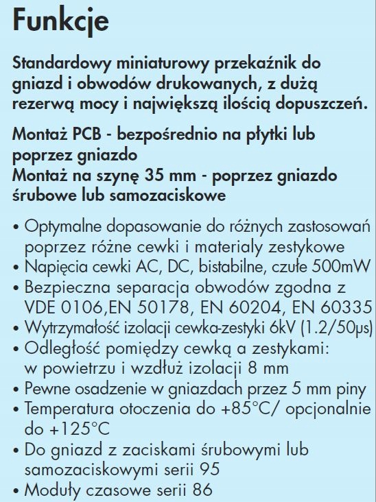 Obciążalność styków DC @R (przy obciążeniu rezystancyjnym): 8A / 30V DC