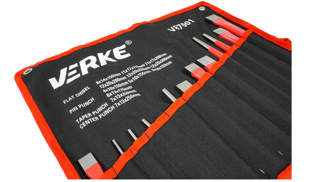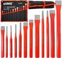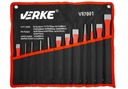 Zestaw przecinaków, dłut i punktaków niezwykle przydatny w każdym domu lub warsztacie. Wykonane ze stali Cr-V. 12 elementów stanowi komplet najpotrzebniejszych narzędzi. Wszystkie elementy zostały uporządkowane w praktycznym i wytrzymałym pokrowcu, do wygodnego przechowywania i przewożenia. Wysoka jakość wykonania zapewnia trwałość na długie lata.