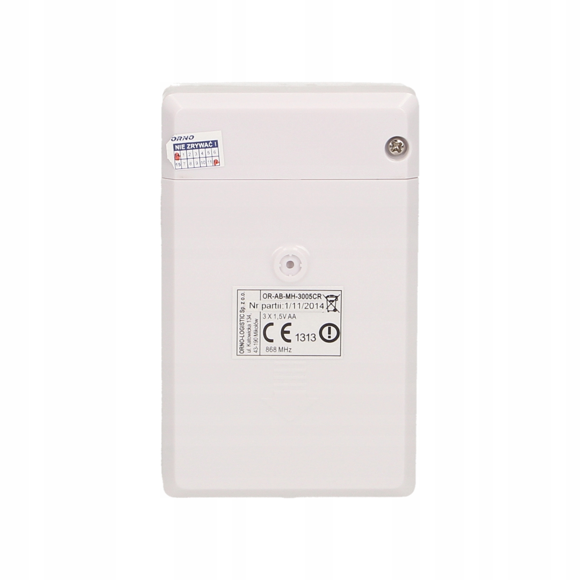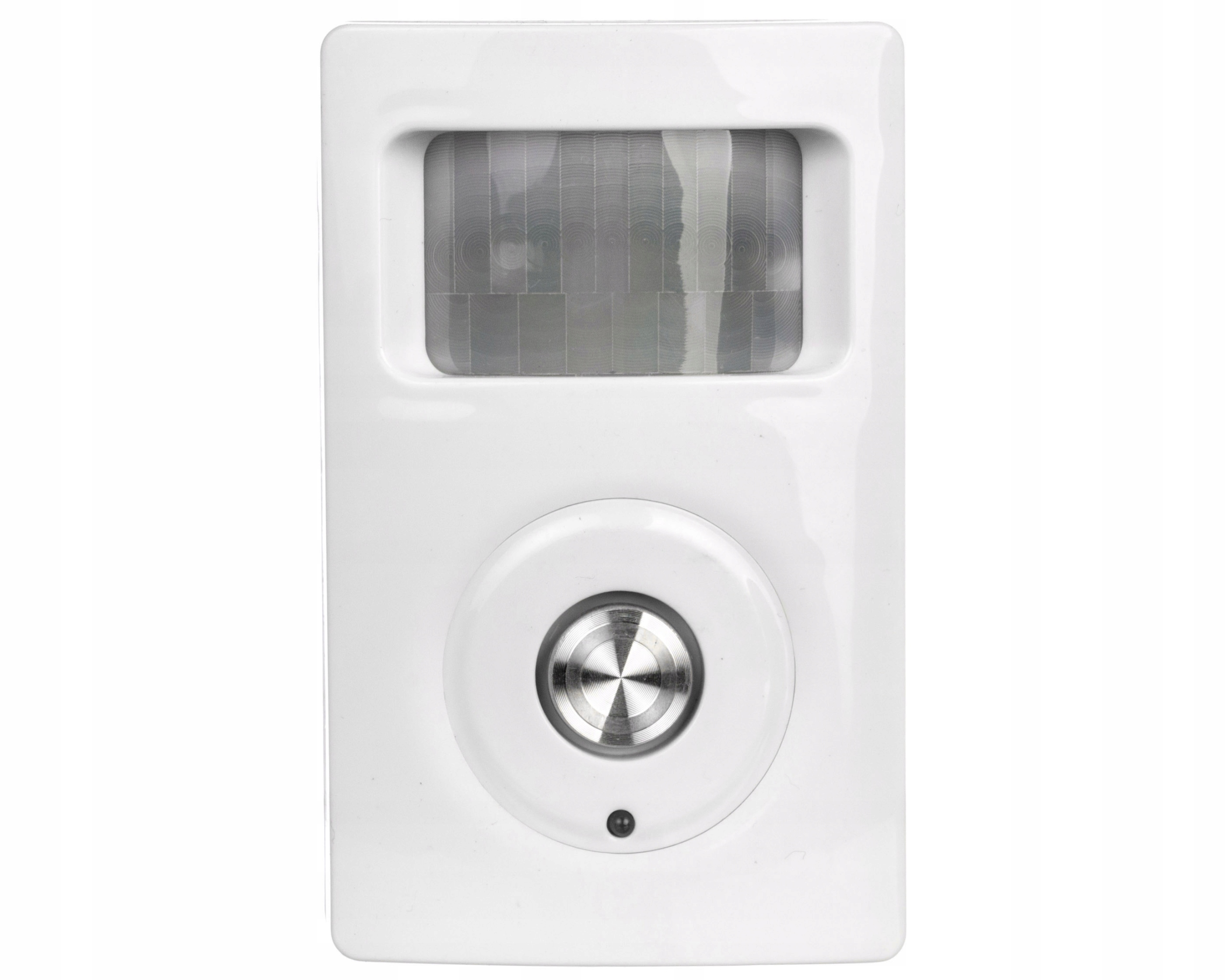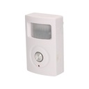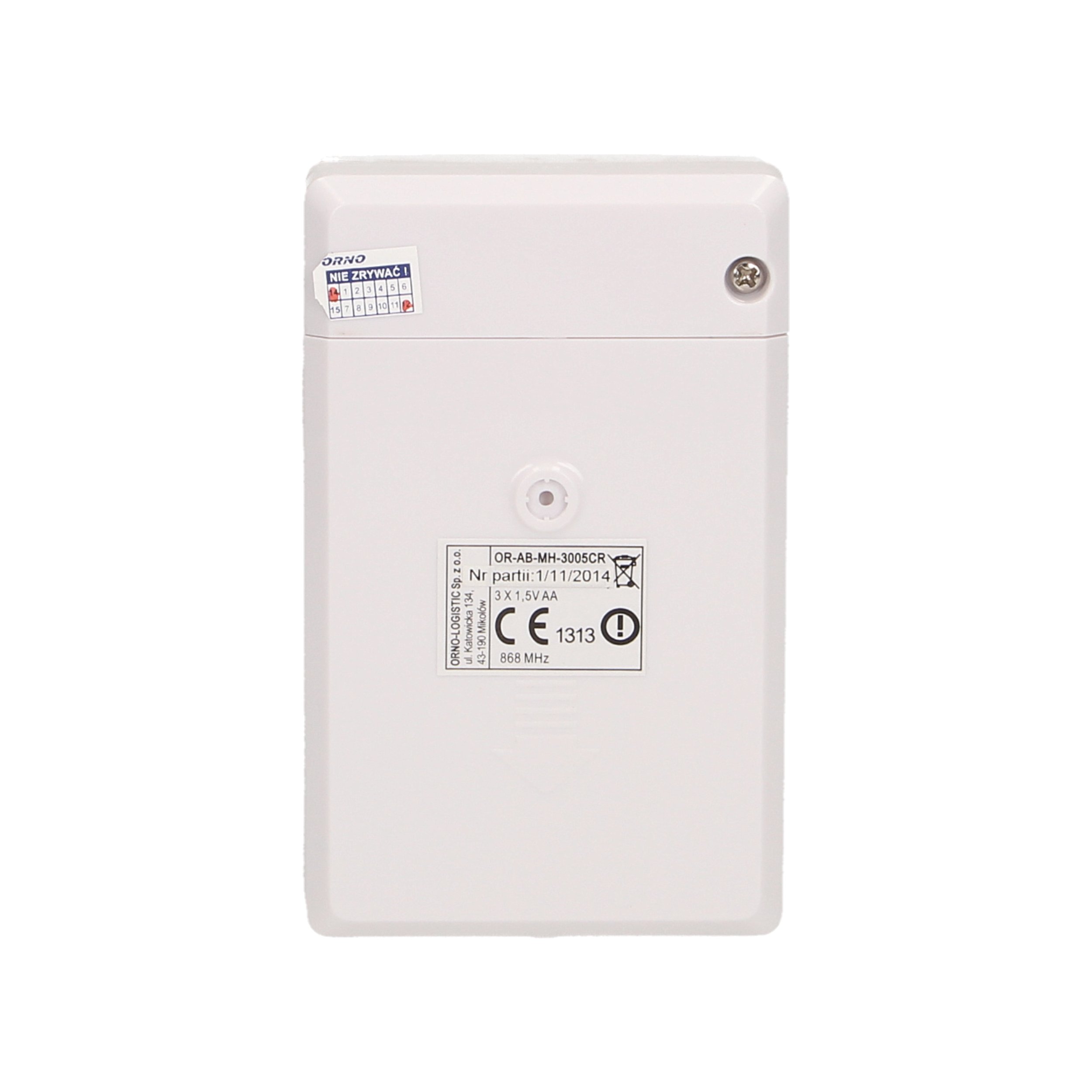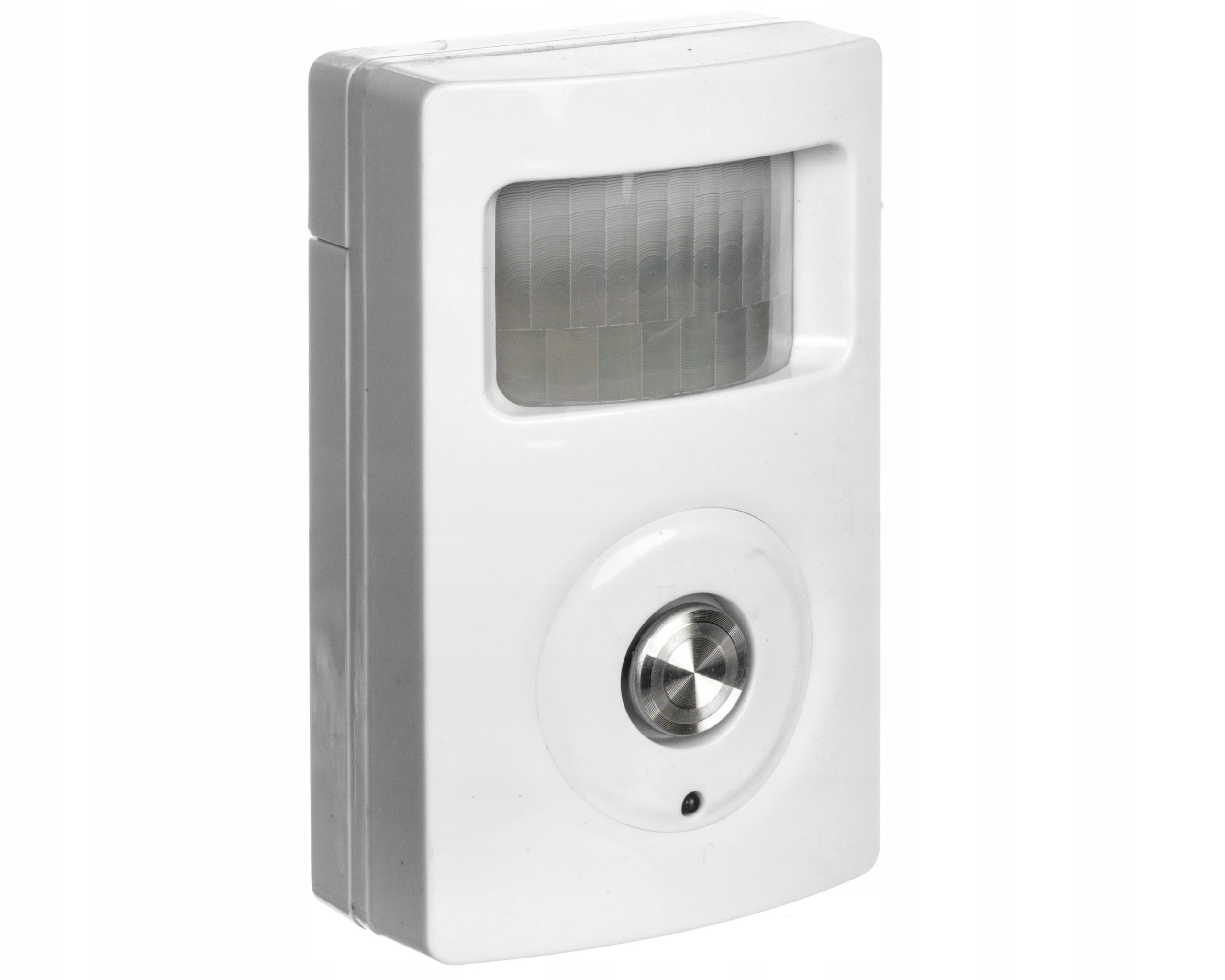 Bezprzewodowy czujnik ruchu do systemu alarmowego z serii MH, kąt widzenia poziomo 140°, pionowo 90°, zasięg detekcji ruchu 10 m, learning system (automatyczne logowanie), sygnalizacja słabych baterii.