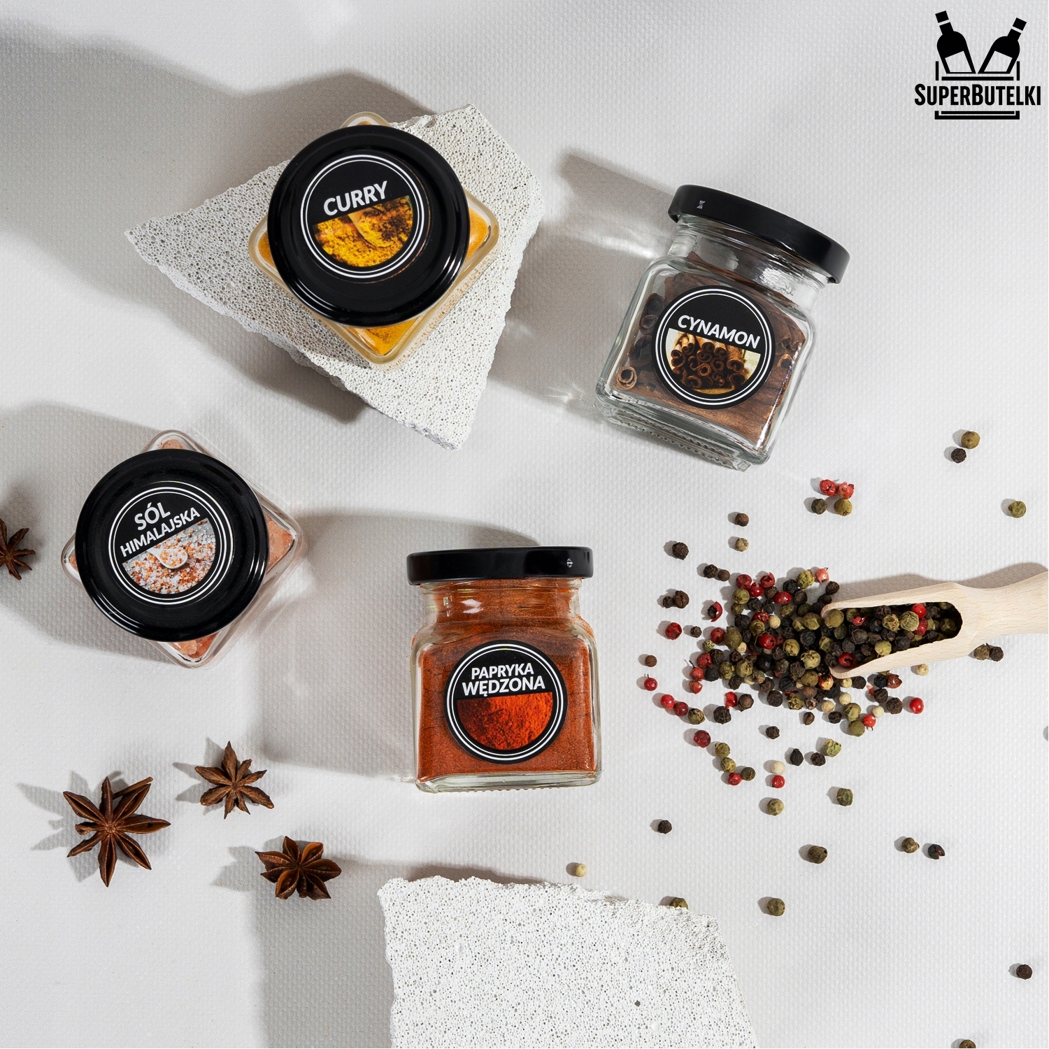 ⭐ Eleganckie kwadratowe słoiczki o pojemności 120 ml, które doskonale nadają się do przechowywania przypraw, ziół, sosów, miodów czy małych przetworów. Słoiki wyposażone są w metalowe zakrętki, które zapewniają szczelność i świeżość przechowywanych produktów. Kwadratowy kształt słoików nie tylko prezentuje się elegancko, ale również ułatwia ich przechowywanie, zajmując mniej miejsca na półkach. W zestawie znajduje się także 80 sztuk samoprzylepnych etykiet z nadrukiem, które umożliwiają estetyczne i czytelne oznakowanie zawartości słoików. Dzięki nim z łatwością zorganizujesz swoją kuchnię lub spiżarnię. Łopatka wykonana z drewna bukowego ułatwi nabieranie sypkich przypraw ze słoiczków. Zestaw ten rozwinie Twój talent kulinarny, a kuchnia będzie zorganizowaną i spójną przestrzenią.