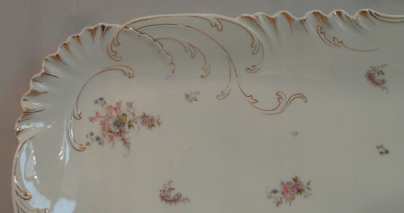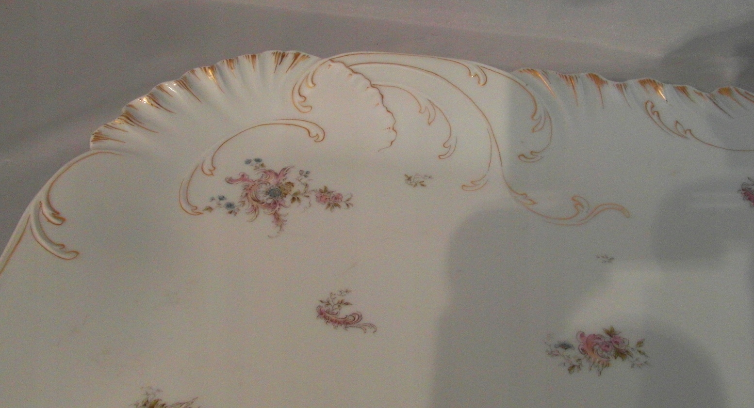 Porcelana biała. Reliefy, złocenia i dekoracja kwiatowa.