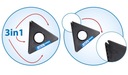 Скребок уникальной треугольной формы имеет 3 острых лезвия, которые позиции легко меняются. Лезвия скребка изготовлены из 100% поликарбоната. Они предназначены для эффективного удаления даже толстых слоев льда. С помощью специального отступа при установке на скребок вы легко очистите щетки стеклоочистителя от снега и льда.