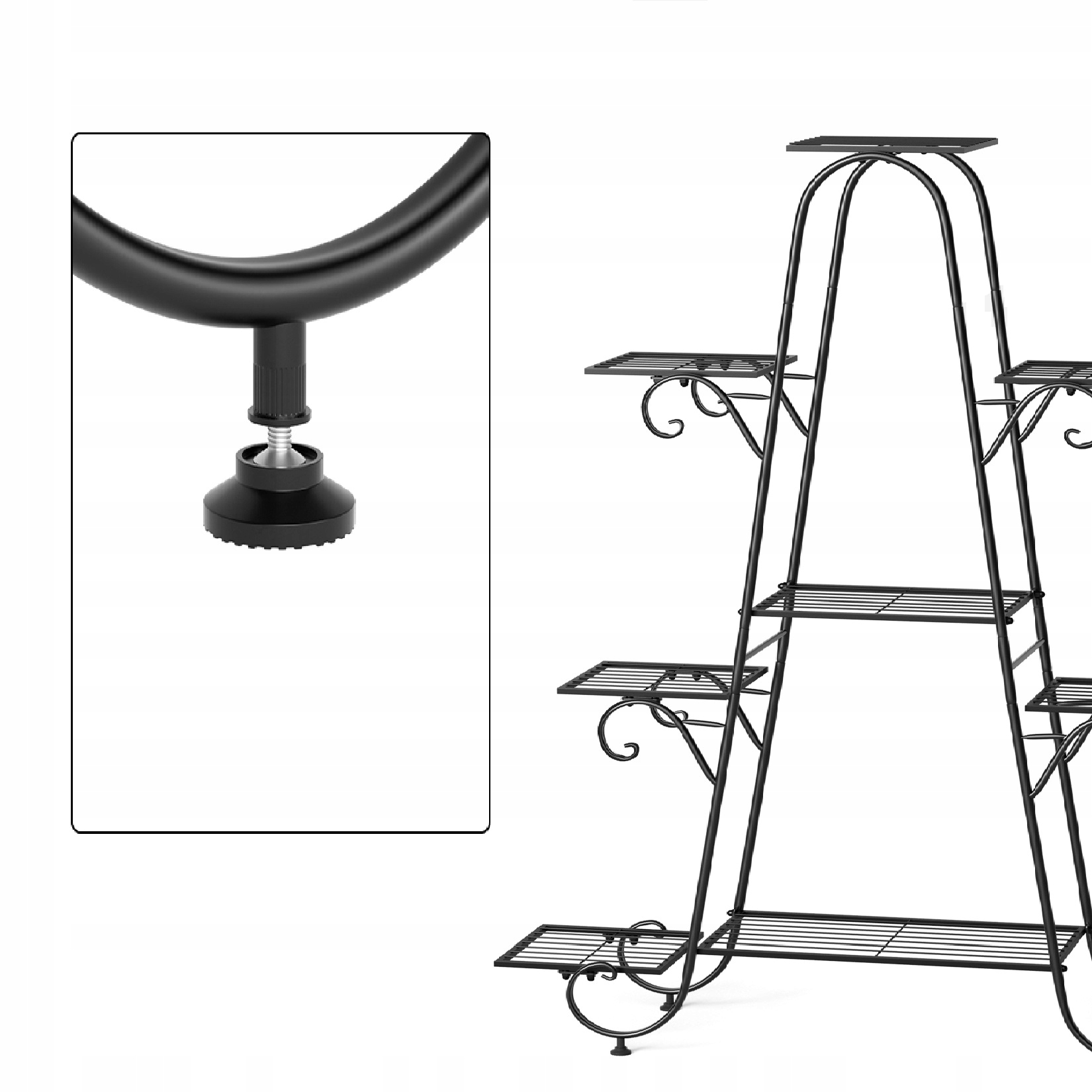【Большое значение подставки для растений】 изогнутая линия повышает стабильность и красоту. Подставка поднимает растения с земли, дает им достаточно солнечного света и лучше рост. Лоток с проставками предотвращает накопление воды во время полива. Специально добавлен нижний винт можно регулировать отдельно для баланса. Поместите тяжелые горшки на нижние полки, чтобы сохранить стойку в равновесии и предотвратить опрокидывание.