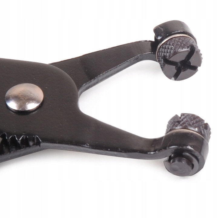 Szczypce do opasek z obrotowymi szczękami-szczypce pasują do większości rodzajów sprężystych opasek zaciskowych, obrotowe szczęki ponacinane w celu dobrego trzymania dużych i małych zacisków pod dowolnym kątem. Blokada zapadkowa umożliwiająca przytrzymanie szczęk w 5 różnych pozycjach. Blokada pozwala na bezpieczne trzymanie naprężonej opaski.