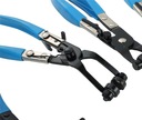 Wygięte szczypce do wąskich opasek zaciskowych-umożliwiają zakładanie oraz zdejmowanie opasek w trudno dostępnych miejscach. Wygięte szczęki oraz obracające się końcówki pozwalają chwycić opaskę pod różnym jej kątem zamocowania. Również posiadają blokadę opaski co czyni pracę bezpieczną.