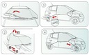 1. Osłonę układamy symetrycznie na przedniej szybie tak aby dolna część wsunięta była pod pióra wycieraczek