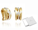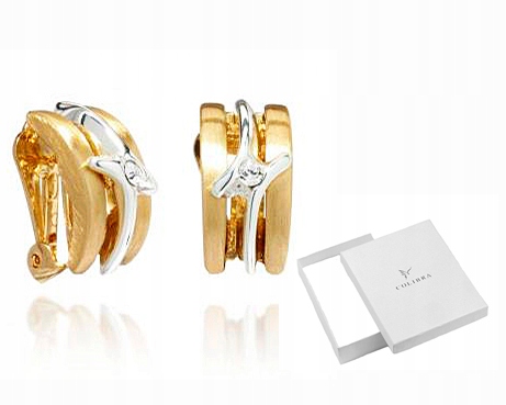 Złoto-srebrne klipsy matowo-błyszczące, firmy Colibra, zdobione ręcznie kryształami Crystallized–Swarovski, wykonane ze stopu jubilerskiego trwale pozłacanego 24 karatowym złotem, zgodnie z najwyższą sztuką złotniczą oraz dbałością o detale, posiadają oryginalne metki firmowe.