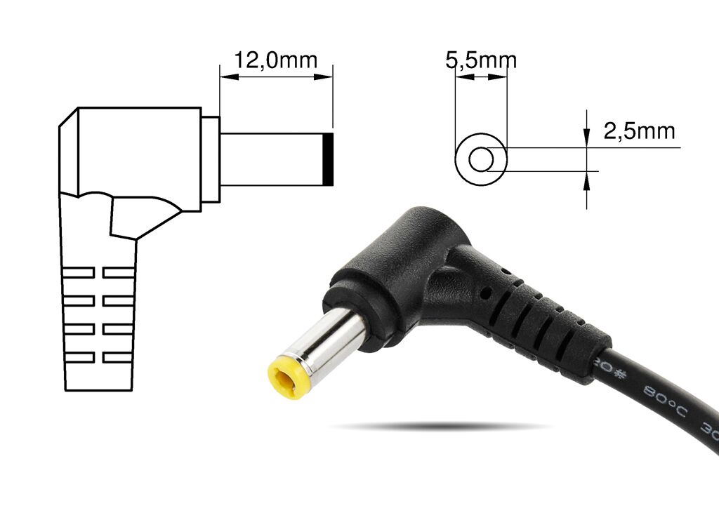3. Wymiary wtyczki - podane w milimetrach i widoczne na zdjęciach muszą odpowiadać wymiarowi gniazda komputera (jeśli mamy stary zasilacz to można zmierzyć wtyk)