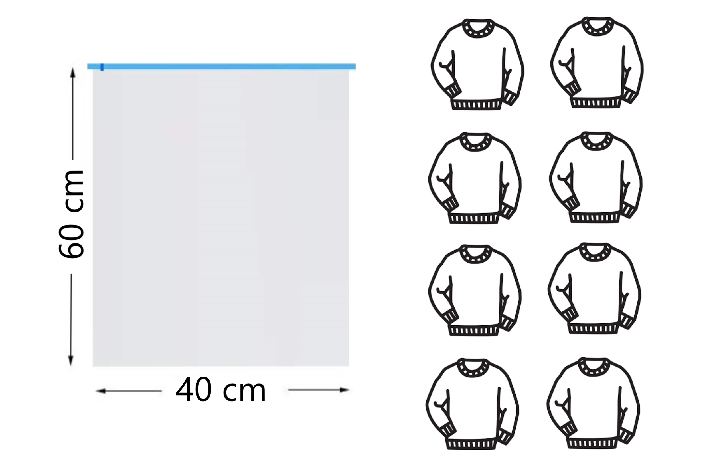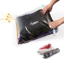 Wystarczy że włożysz rzeczy do środka, zamkniesz zamek strunowy z jednej strony i zaczniesz całość zwijać w rulon. Powietrze ucieknie z drugiej strony worka. Jesteś w stanie oszczędzić do 5 razy więcej miejsca w torbie podróżnej.