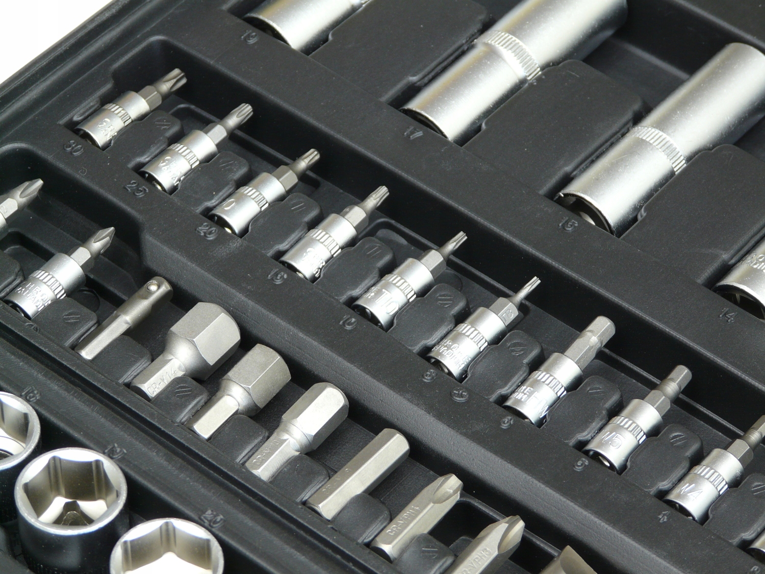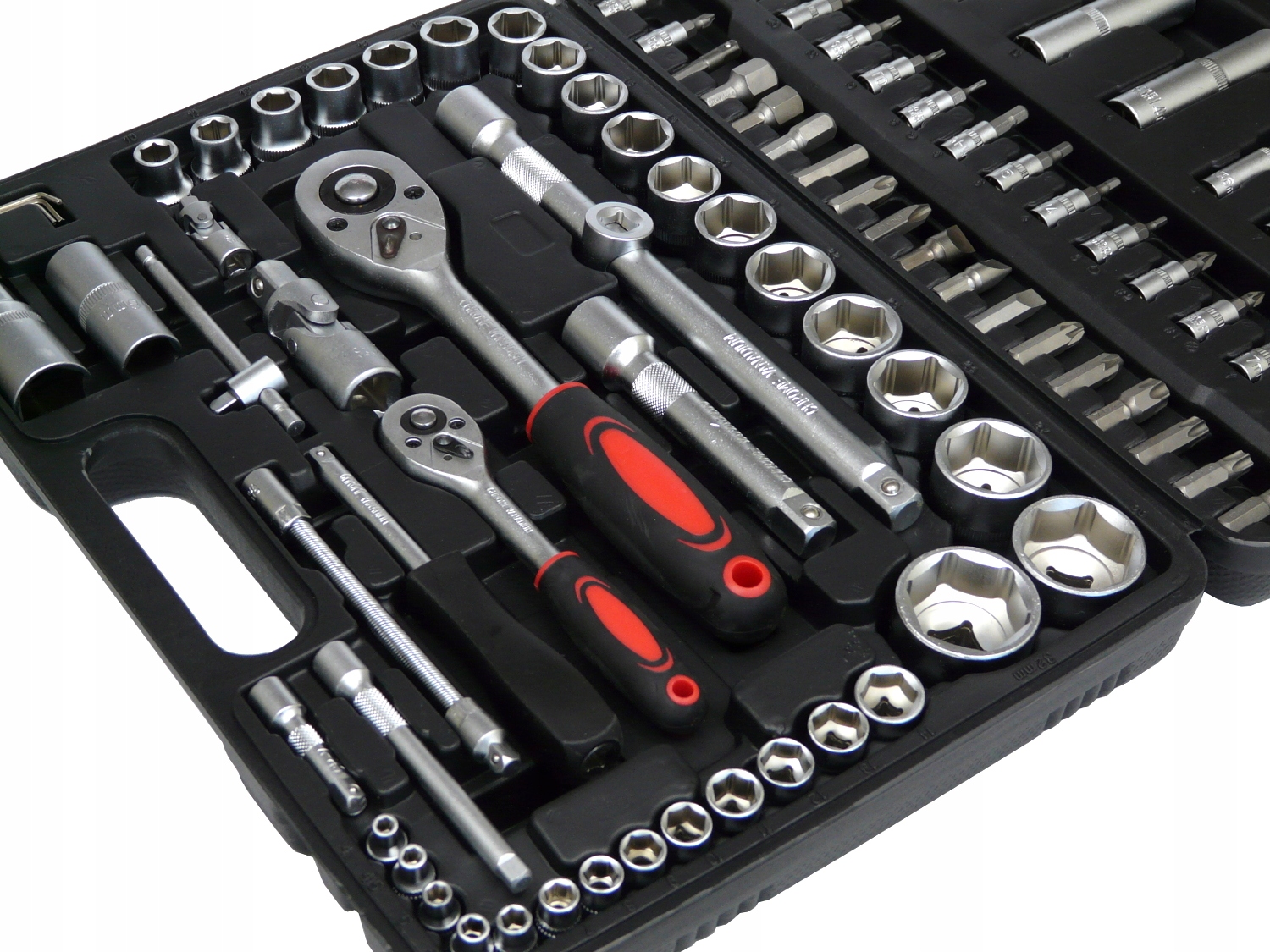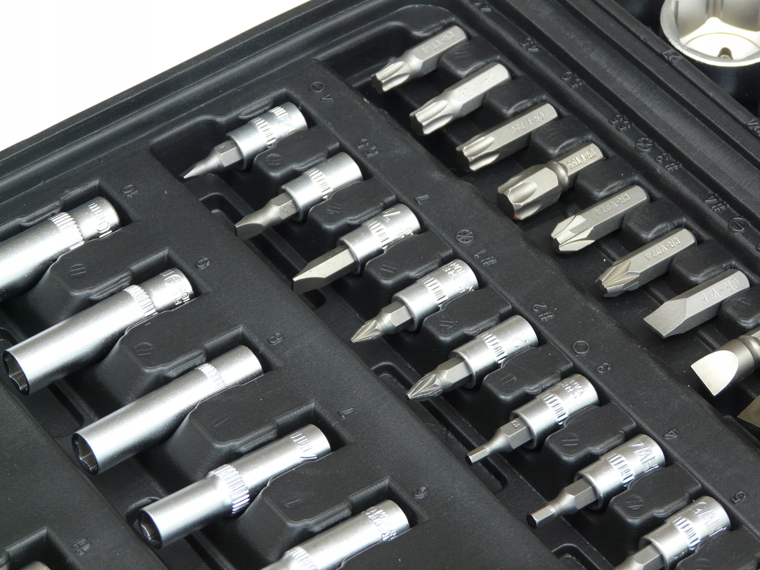Zestaw kluczy 108 el. jest zapakowany w praktyczną miękką walizkę. Nasadki odznaczają się doskonałą wytrzymałością mechaniczną, oraz dużą odpornością na ścieranie, grzechotki posiadają MOCNE zębate mechanizmy. Pełen Pakiet nasadek zapewni doskonałe dopasowanie klucza do danej potrzeby w każdym miejscu pracy.