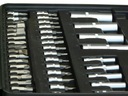 Profesjonalny zestaw bitów, służący do odkręcania śrub specjalnych typu: hex, torx, spline. Różnorodność bitów zapewnia możliwość wykonania wielu prac w specjalistycznych serwisach mechanicznych i samochodowych. Końcówki posiadają dwie długości 30 oraz 75 mm, mocowane w uchwycie sześciokątnym 10 mm, dostosowanym do współpracy z grzechotką 1/2" oraz 3/8".