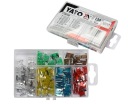 Zestawy bezpieczników chroniących instalacje elektryczne w autach przed uszkodzeniem spowodowanym nadmiernym natężeniem prądu. Szeroko stosowane w motoryzacji. Zapakowane w poręczne kasetki.