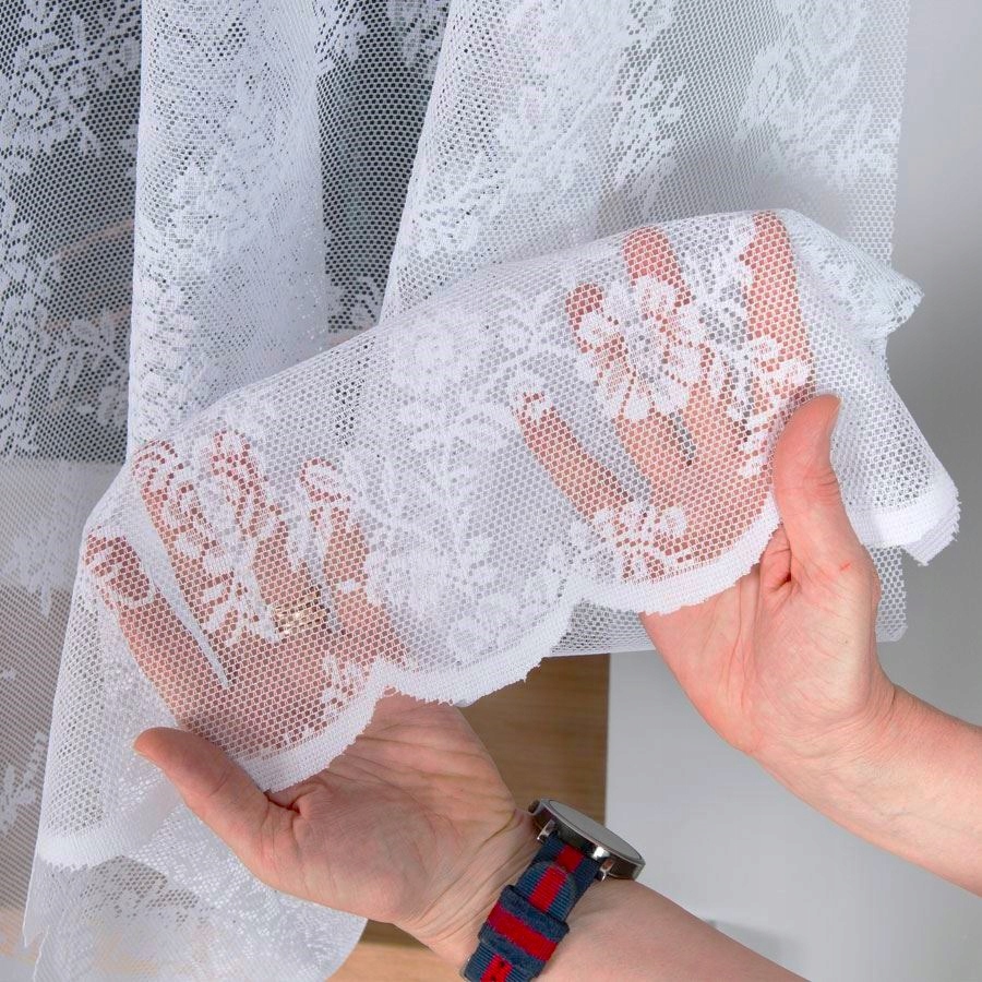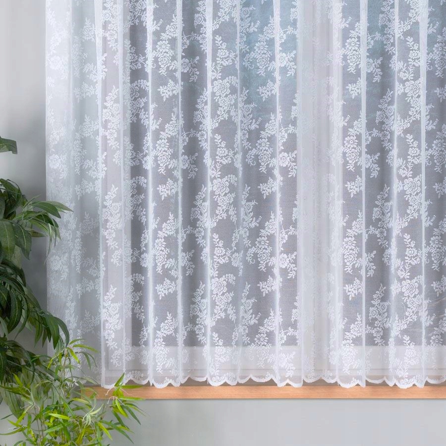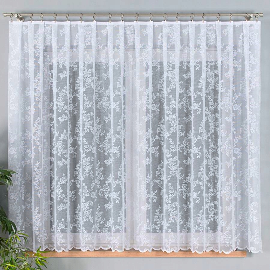 Przedmiotem sprzedaży jest firana żakardowa we wzór w kwiatki rzucane po całości. Jest ona wykonana z wysokiej jakości przędzy poliestrowej. Nie wymaga prasowania. Firana ma starannie obszyte boki.