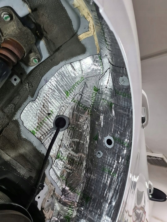 Выклеивание снаружи крыло бутиловым ковриком марки Bitmat укрепляем весь элемент колесной арки. Импульс колеса, шум шины и система подвески создает очень сложный тип звука для уменьшения, поэтому мы должны приклеить кроме того, нанесите пену Bitmat K на пластиковую крышку колесных арок.