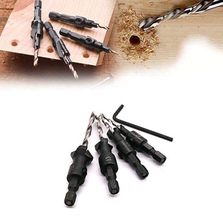 ⭐Wiertła do fazowania w drewnie posiada możliwość regulowania głębokości odwiertu poprzez poluzowanie śruby, ustawienie wiertła/głębokości i dokręcenie z powrotem śruby.