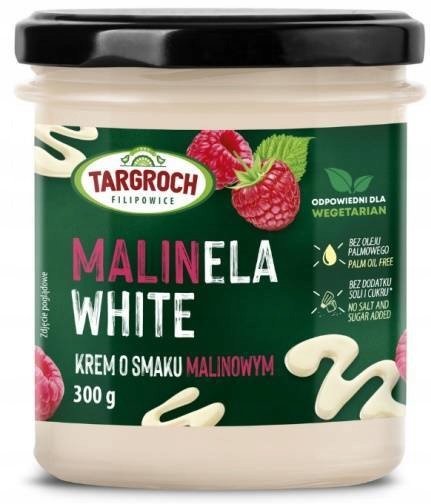 MalinEla White to pyszny krem biały o smaku malinowym, bez dodatku cukru. Zawiera substancje słodzące. naturalnie występujące cukry.