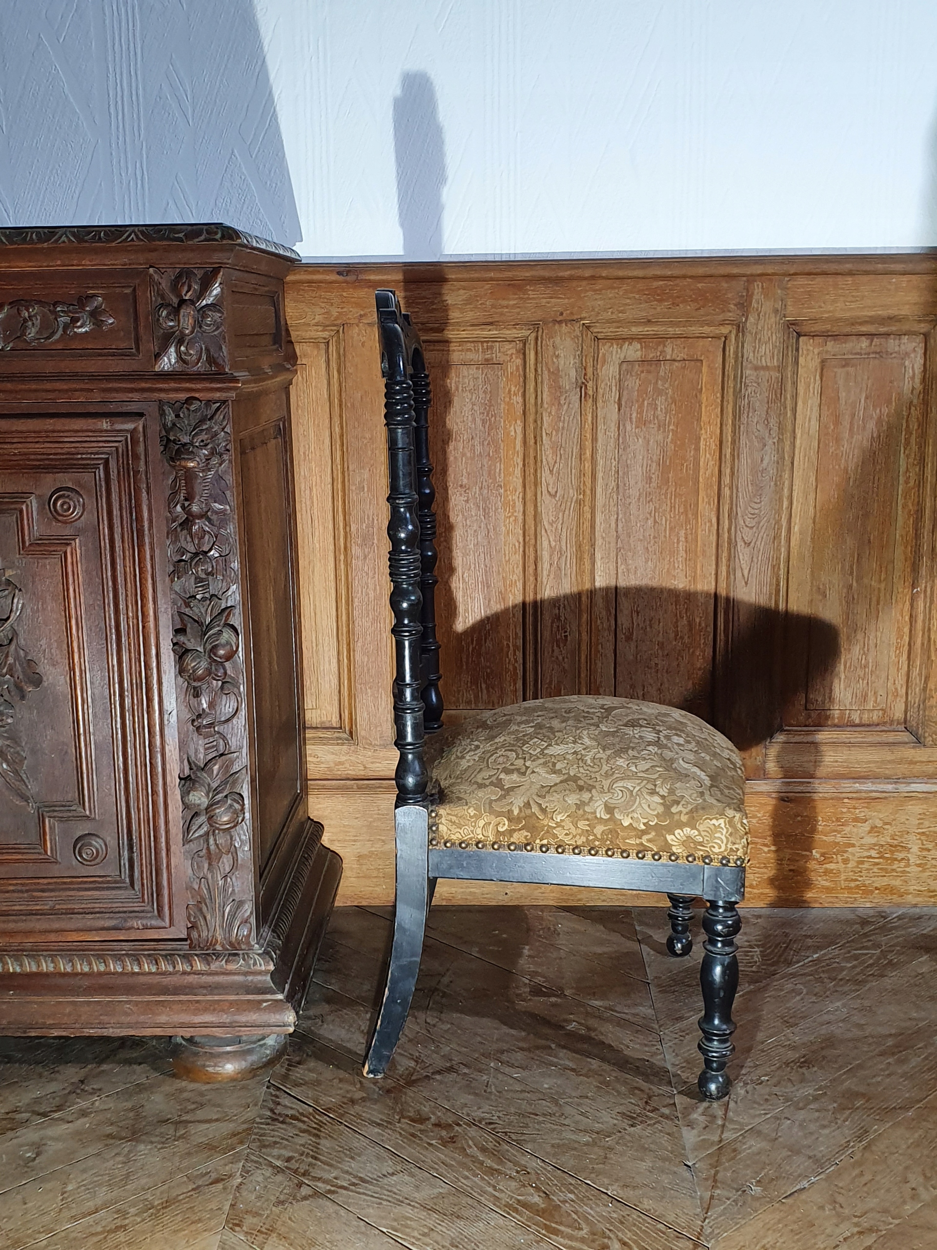 Krzesło , oryginalne poł. XIX w , styl Napoleon III 1850 r pochodzi z Francji , naturalne zużycie czasem , oryginalne obicie w kwiaty , bardzo dobrze zachowane