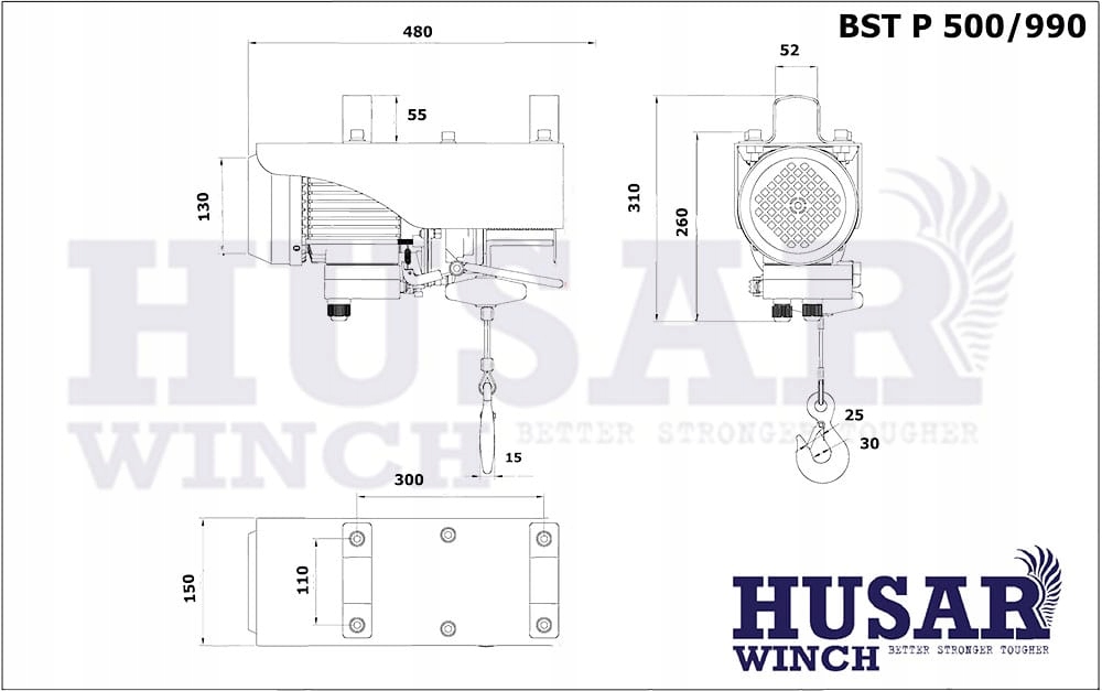 Wyciągarka służy do bezpiecznego podnoszenia i opuszczania przedmiotów do maksymalnej wagi 500 kg (na pojedynczej linie)