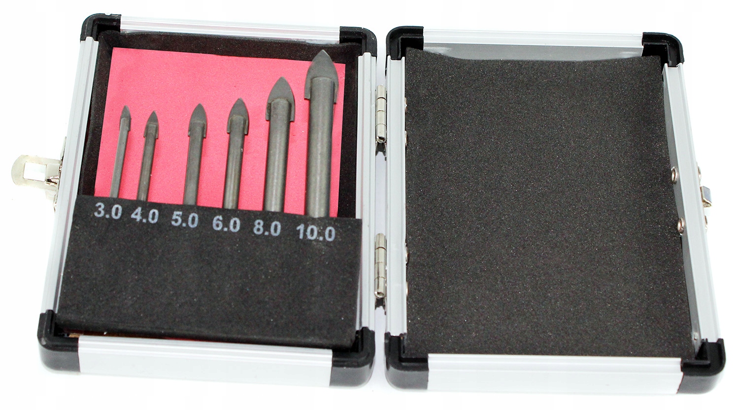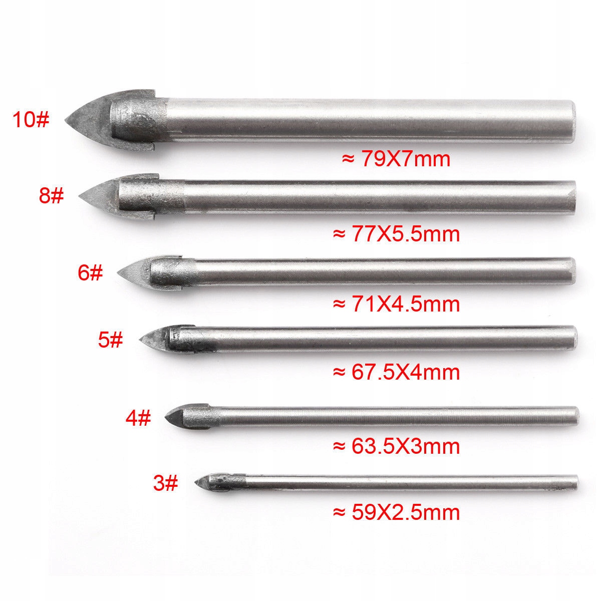 Poręczny zestaw 6 sztuk wierteł do szkła i ceramiki, który warto posiadać w przydomowym warsztacie lub skrzynce narzędziowej.