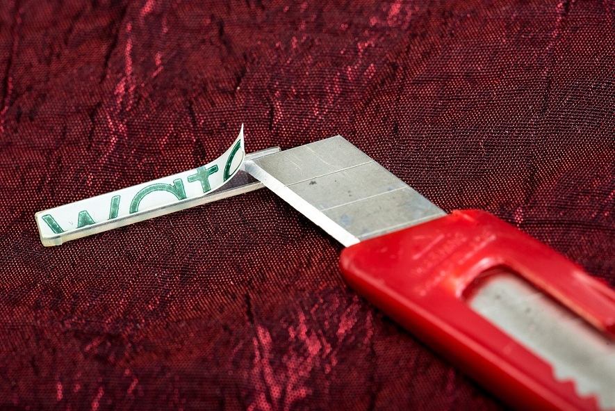 Po usunięciu folii z dwóch stron paska proszę koniecznie ściąć nożem jego krawędzie co ułatwi umieszczenie paska w otworach podstawki.