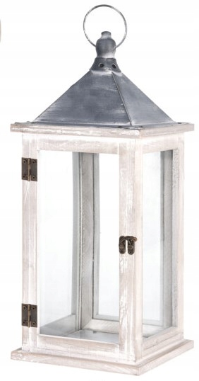 Lampion wykonany z drewna w kolorze szarym, kopuła lampionu jest z metalu w kolorze szarym - bez połysku.