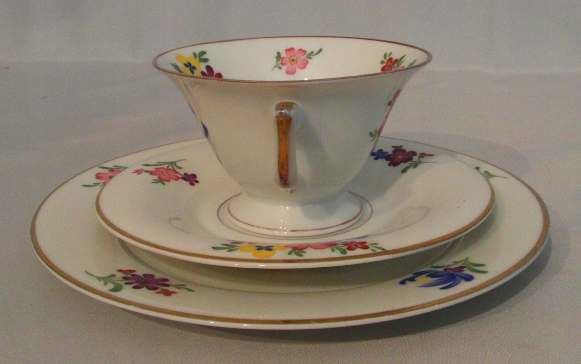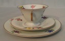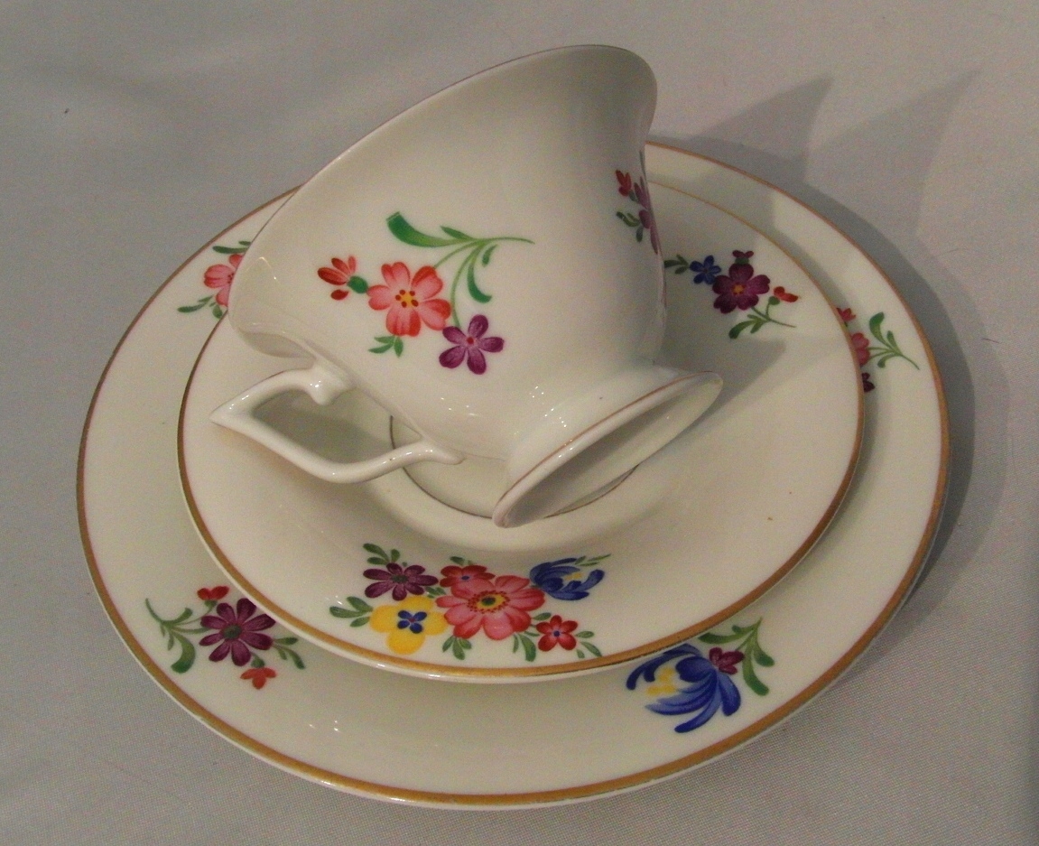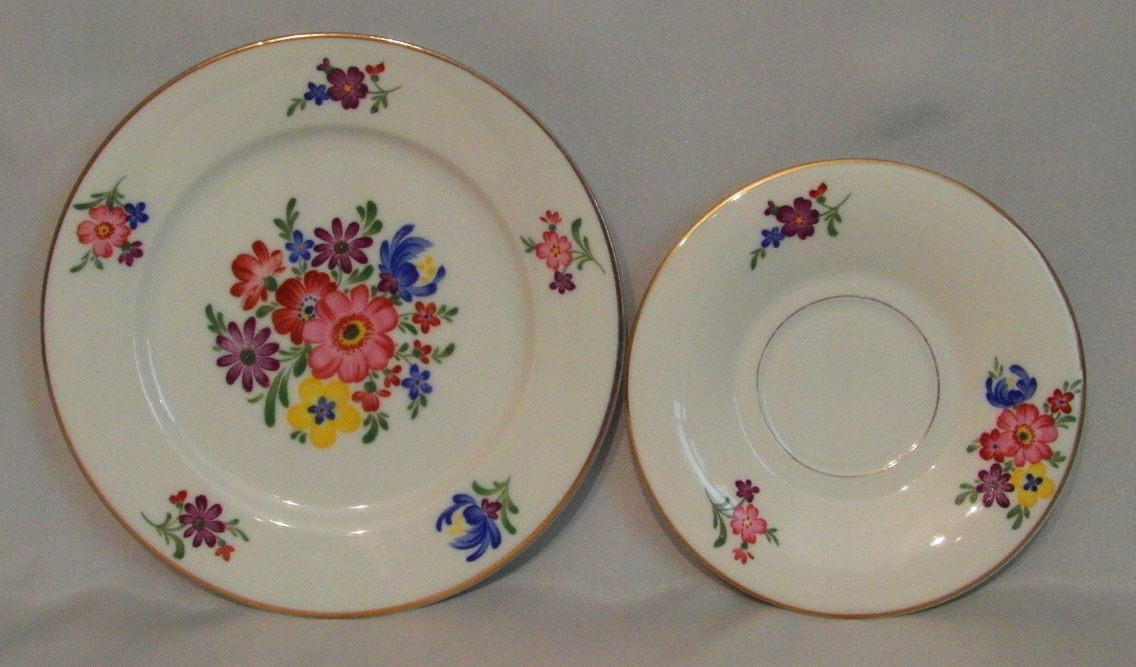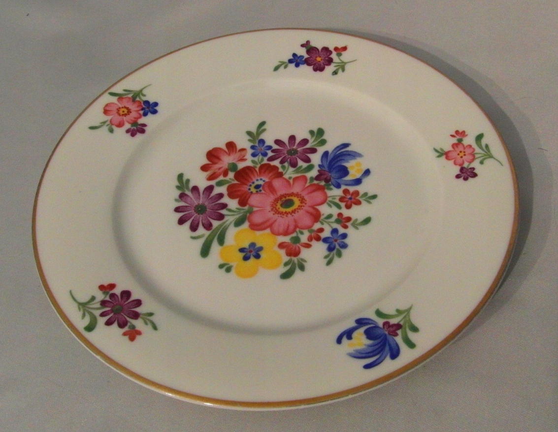 Porcelana biała. Złocenie i ręcznie malowany bukiet kwiatowy.